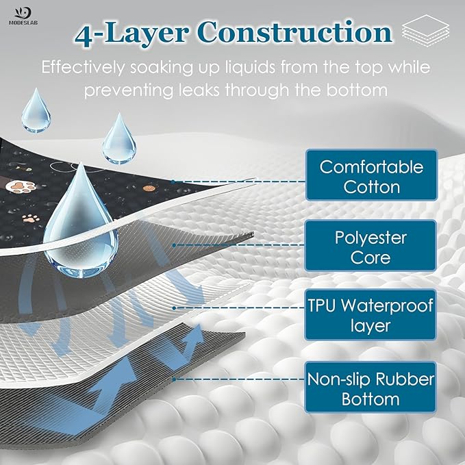 • Enhanced Comfort Design‌: The guinea pig bedding is crafted from 4 absorbent, quilted fabric that provides a soft, cozy surface while quickly absorbing urine. The bottom leak-proof backing, covered with rubber dots, ensures the bedding stays firmly in place without slipping, promoting a comfortable and hygienic environment for your furry friends