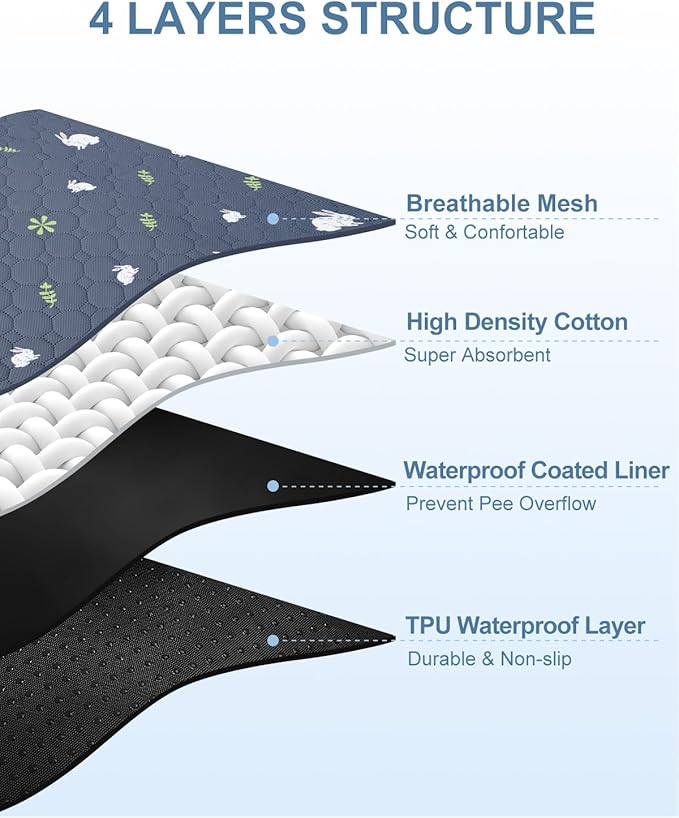 4 Pack 24 x 18 Inch Guinea Pig Cage Absorbent Liner Reusable Waterproof Super Absorbent Guinea Pig Urine Pad Non-Slip Mat for Small Animals Rabbit Hamster Rat. Washable Guinea Pig Bedding