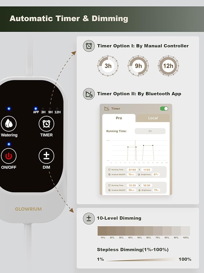 • Smart Bluetooth & Manual Control: Easily manage your plant light strip with the intuitive Bluetooth app or a simple touch switch. Set schedules, adjust brightness, and create sunrise/sunset transitions—offering flexible options for all your indoor plants