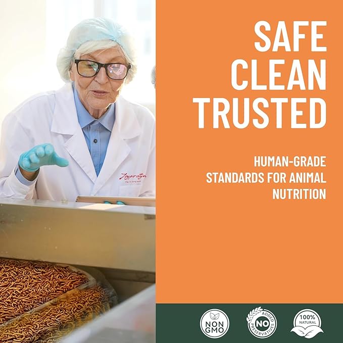• High-Calcium Chicken Grubs: Joyprotyn’s BSFL (Black Soldier Fly Larvae) feed offers 85x the calcium of traditional dried mealworms, enhancing eggshell strength and promoting bone health in your hens for sturdy eggs. This high-calcium feed is perfect for robust egg production and overall poultry well-being.