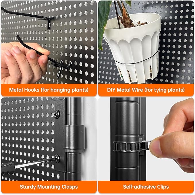 • Creative Plant Shelf with Pegboards - Upgraded from traditional plant stands, this shelf features 4 removable pegboards to suspend plants creatively. Perfect for trailing or light-loving foliage, the staggered layout enhances aesthetic appeal while ensuring optimal light exposure for every plant