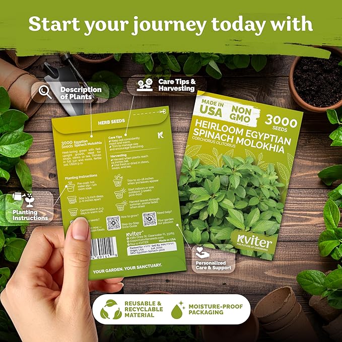 • Global Staple Crop: Enjoy these egyptian spinach seeds organic in soups, stews, or salads. Truly this 2–3 ft annual belongs in any survival seed kit. Our seed packets include 3000 heirloom seeds.