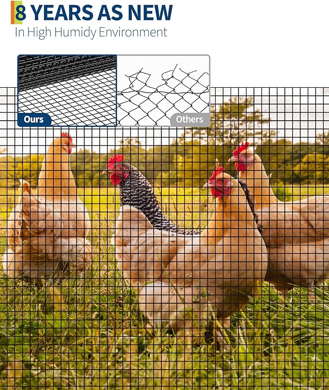• Product size:The size of chicken wire fencing is 1/2 inch x 1/2 inch square mesh, 36 inch x 50FT.Please purchase the appropriate width and mesh according to your needs.