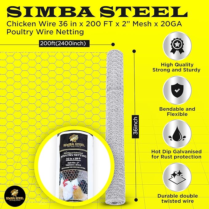• Durable Hexagonal Design: Engineered with a double-twisted hexagonal structure and reinforced for extra sturdiness, this chicken wire provides long-term durability. The evenly spaced design ensures reliable performance, making it an ideal solution compared to traditional galvanized fencing.