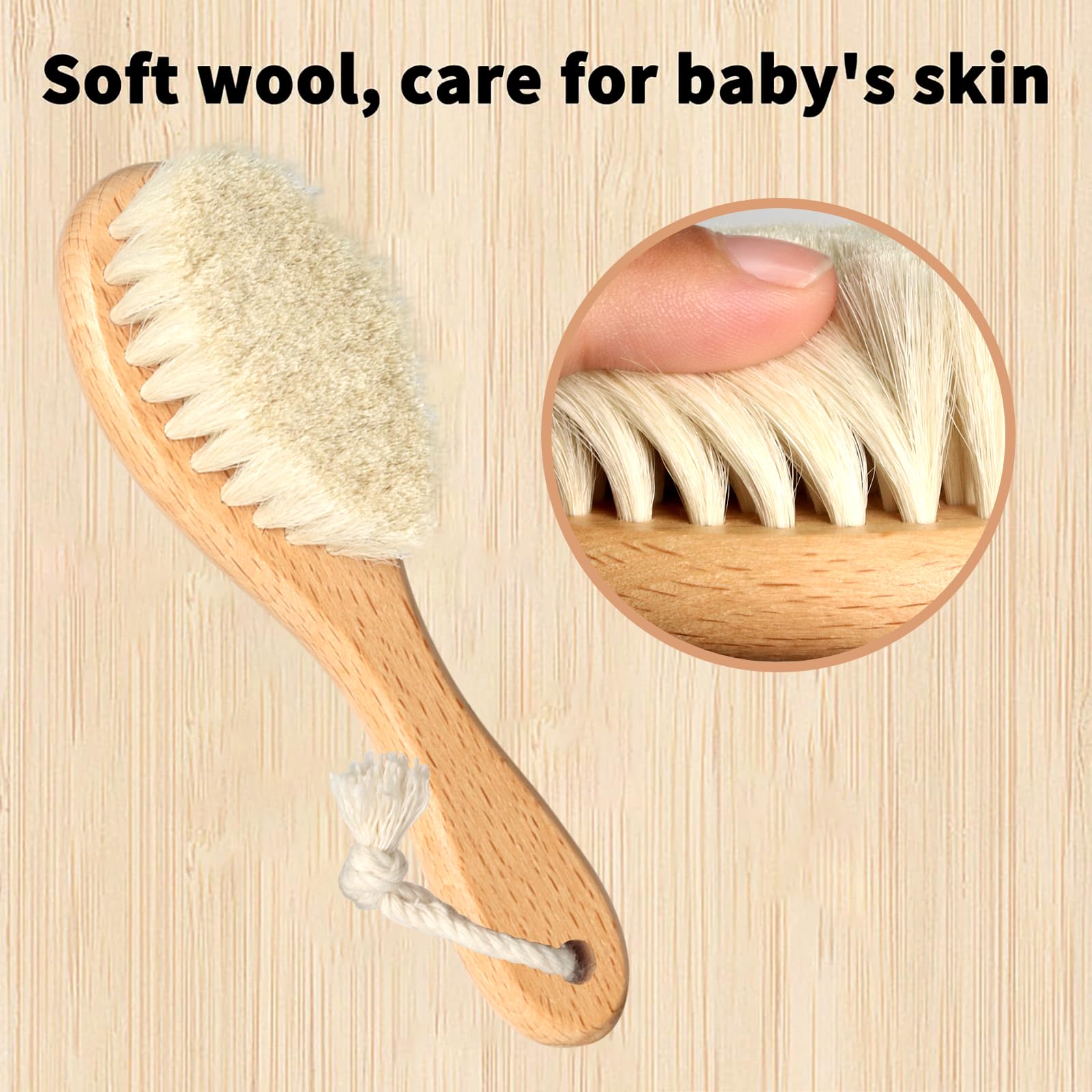 【Natural Material】The brush is made of pure natural wool and beech wood, making it safer for your baby; The bristles help redistribute the natural oils on the scalp to prevent cradle caps