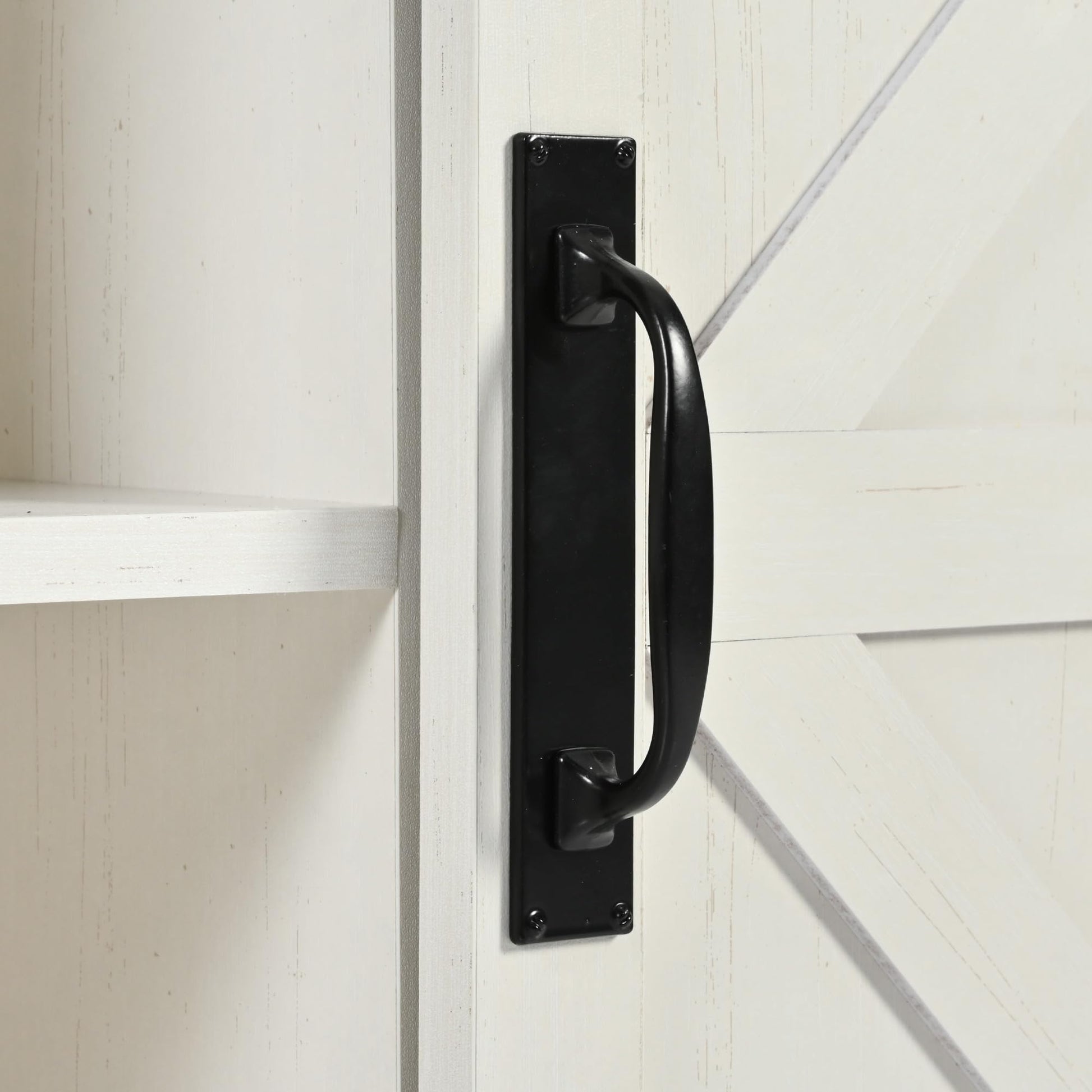 [Timeless Farmhouse Elegance] This Large kitchen island measures 53.75''W x 28.75''D x 36.5'' H. It is designed in a beautiful and elegant farmhouse style, adding a cozy natural vibes to your space. Its warm distressed white cabinets, brown wood grain tabletops and lend a touch of farmhouse charm. Additionally, the metal trim and classic Sliding barn door elements add a retro accent, making this kitchen cabinet fancier and allowing it to perfectly blend into your kitchen and dining room.