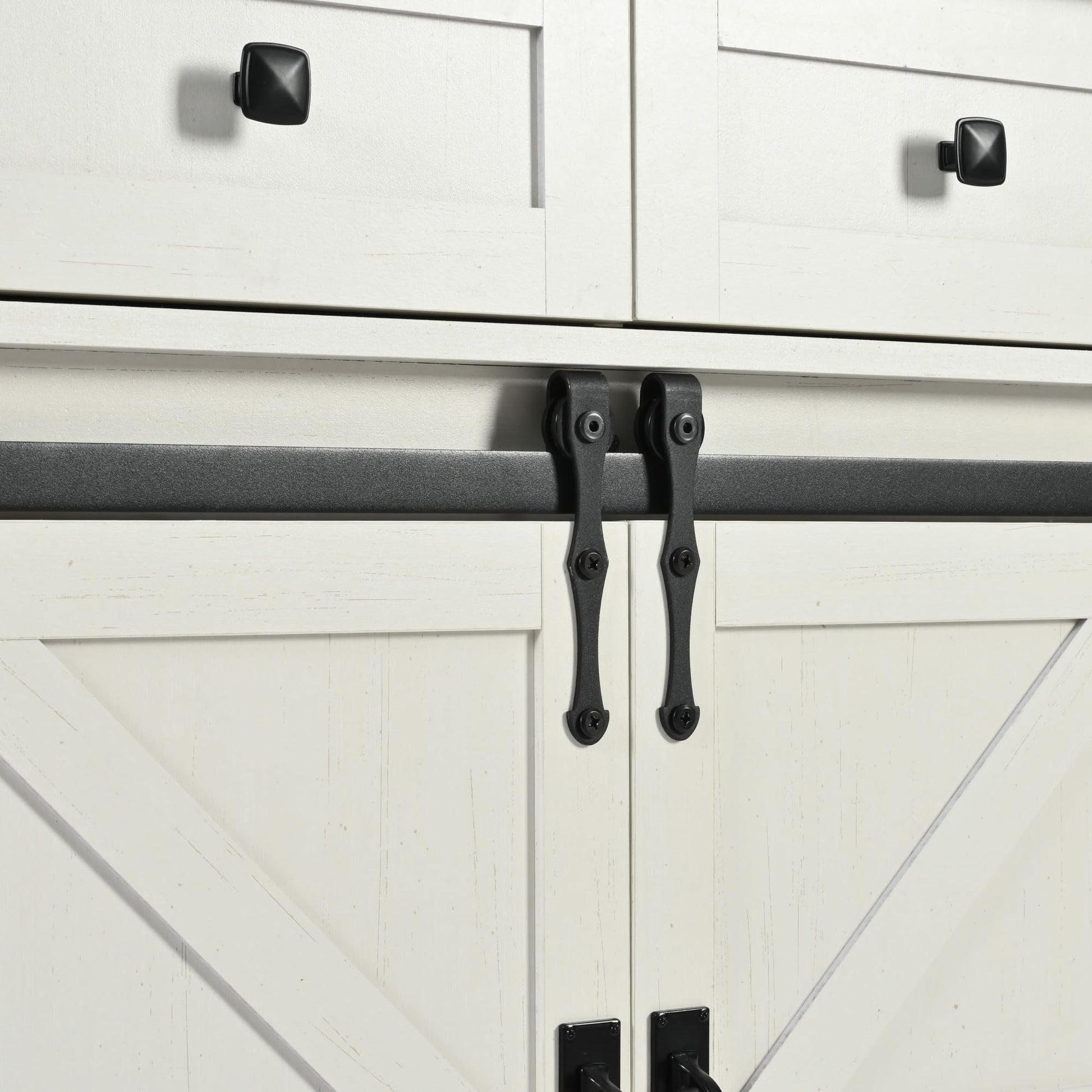 Get rid of kitchen and dining room clutter with our versatile farmhouse kitchen island with 47”W drop leaf features 2 sliding barn doors for easy access to essentials, and the option to conceal the cabinet for a clean look. Inside, there are three adjustable shelves allowing you to customize the interior storage according to your needs and plenty of space on top for coffee makers or microwaves. Plus, three smooth-glide drawers for organizing tableware and more.