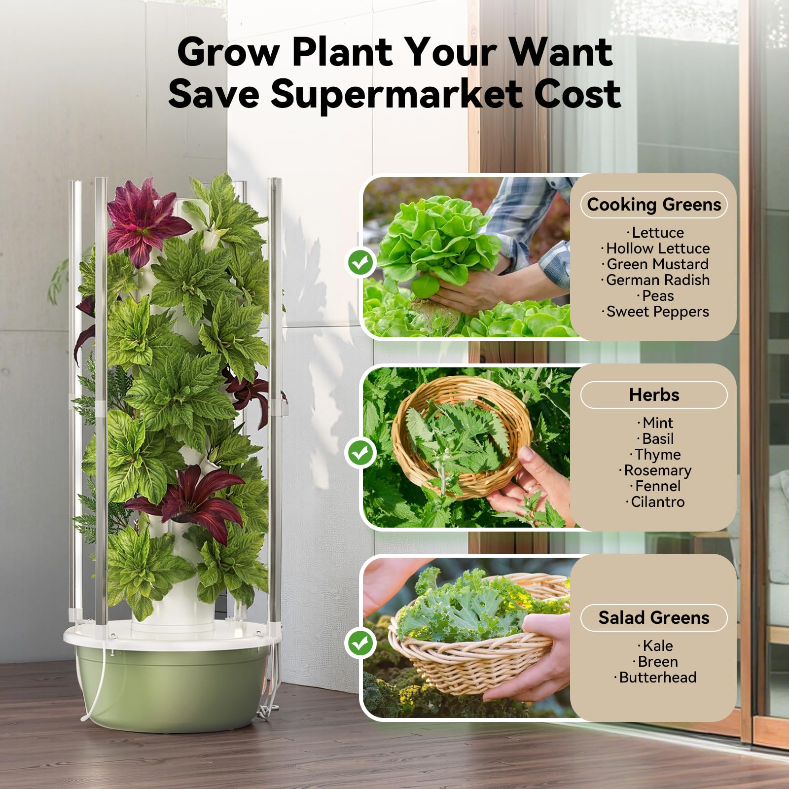 [Beginner-Friendly Starter Kit] – Complete with all accessories, the indoor vertical hydroponic tower requires no tools and is easy to set up in 5 mins. At the same time, it’s also easy to clean and maintain. From apartment beginners to experienced plant lovers, this tower adapts to your needs