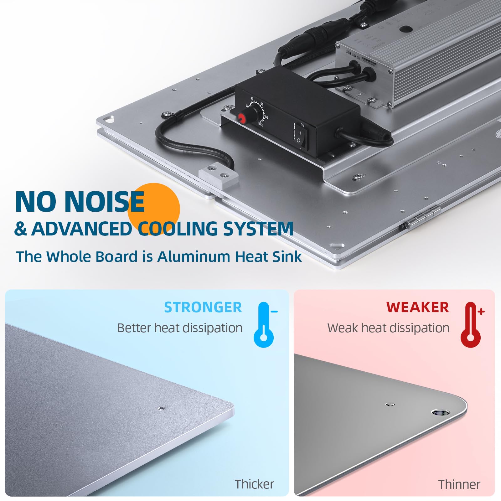 Angle Adjustable Panel & Full Spectrum: When the angle between the two grow lamp panels is 60 degrees, the efficiency of the central area increases by more than 25%. Allow your indoor plants to be exposed to light from different directions. Excellent full spectrum- white, blue, red and IR (3000K, 5000K, 660nm and IR 730nm). The 660nm red and IR light is useful during bloom when it speeds up flowering time and boosts yields