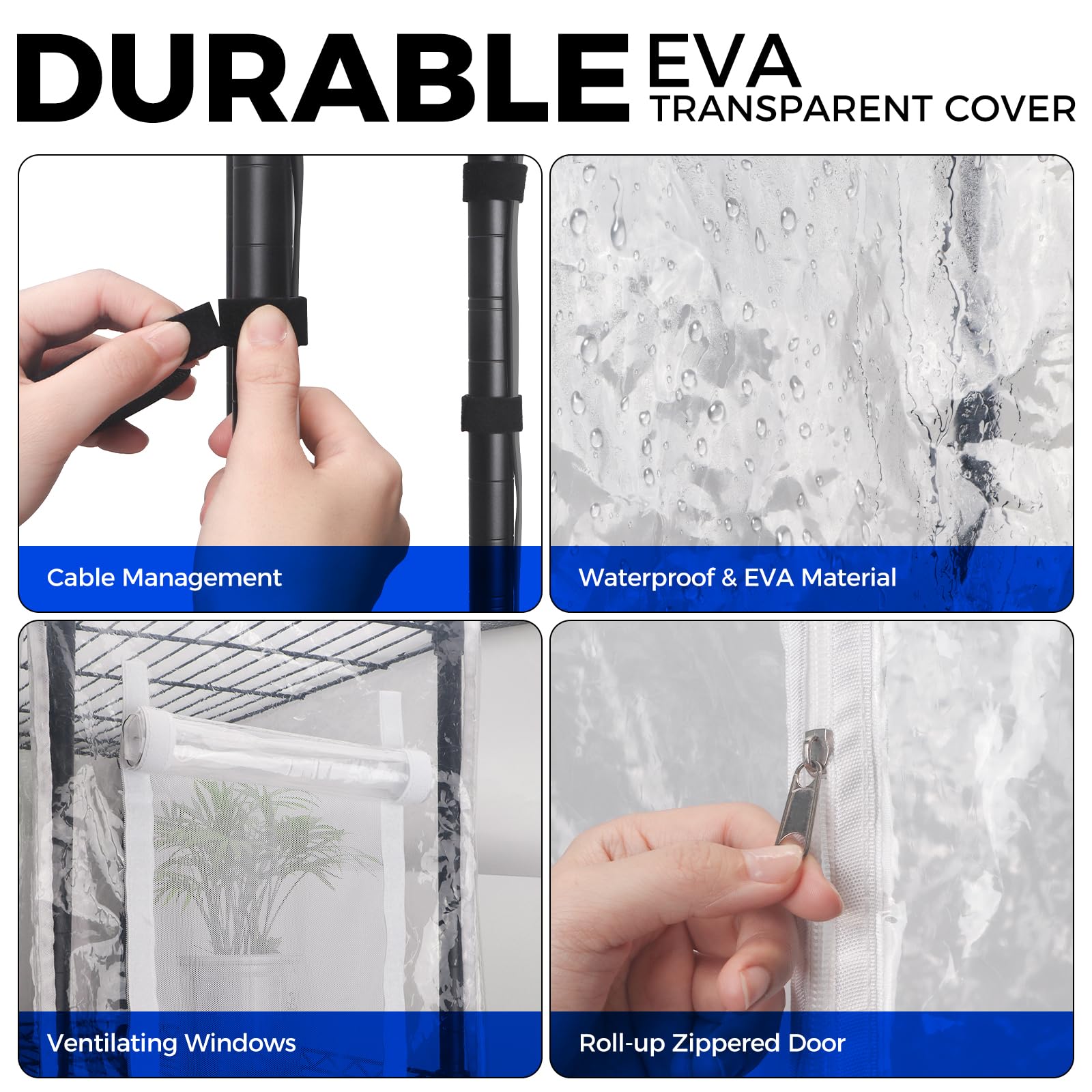 Durable Tent: Constructed from EVA material, the durable tent ensures longevity. Its high-transmittance cover maintains warmth and moisture levels inside, allowing you to monitor your plants from outside the greenhouse. Creates an ideal growing environment for your plants