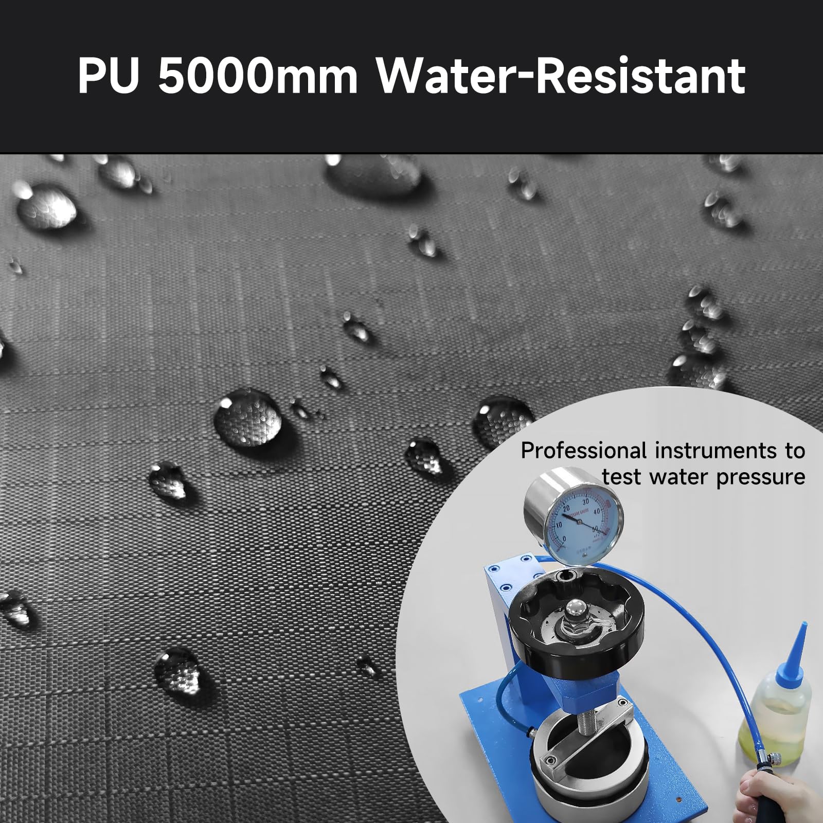 【New Upgraded Materials】The outdoor bike storage tent is crafted from 210D silver-coated Oxford cloth, featuring triple-layer rip and tear-resistant fabric with a PU 5000 waterproof coating. It offers superior protection, preventing equipment aging. All seams are sealed with waterproof tape, all zippers are equipped with waterproof strips to prevent rainwater penetration, enhancing overall waterproofing, ensuring durability even in harsh conditions.