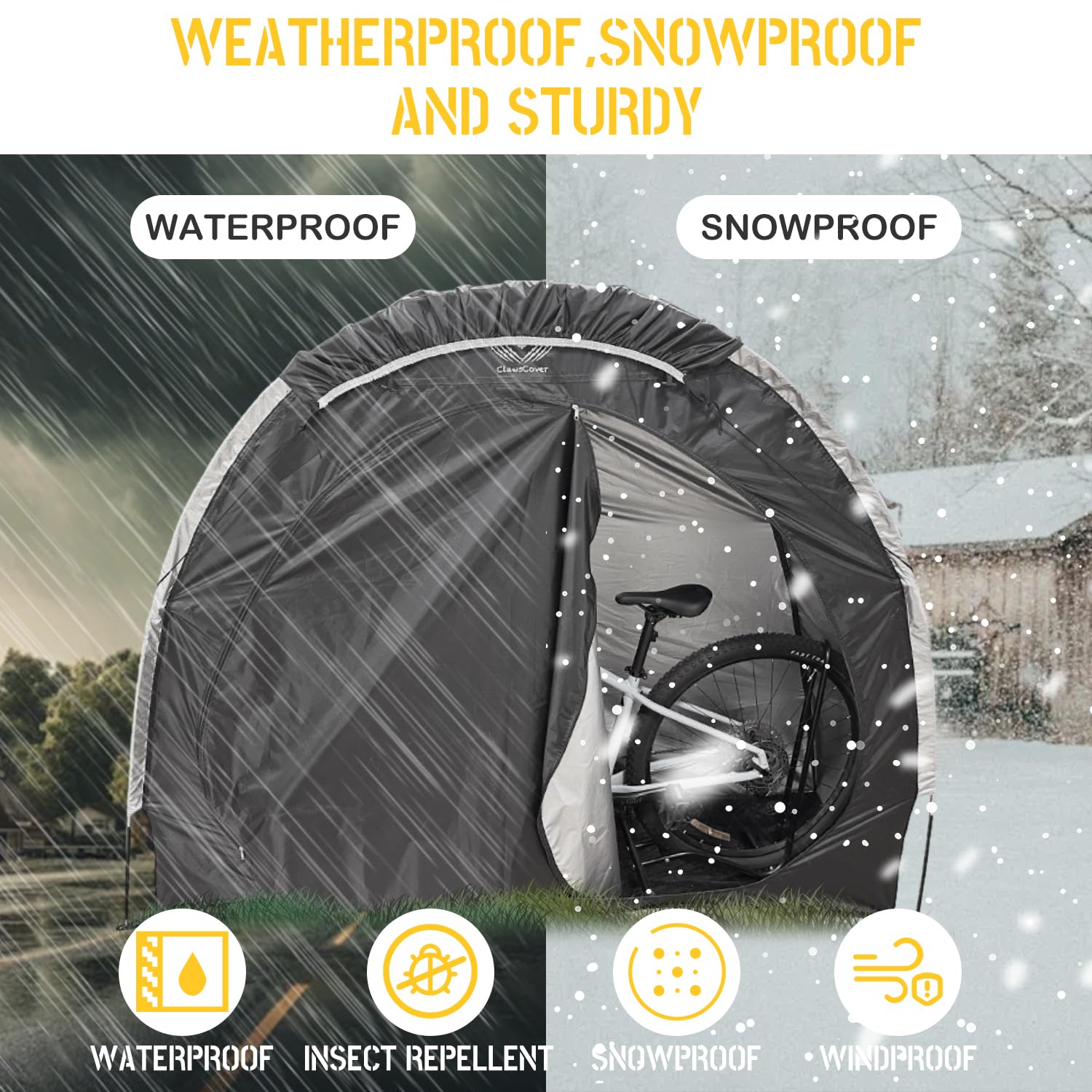 Durable Materials: Ours bike shed is made of high density 210d polyester oxford cloth with silver coating, featuring triple-layer rip and tear-resistant fabric with a PU 5000 anti-UV and waterproof coating,The bike tent fabric is lightweight, but its tear resistance and weather resistance in the outdoors to cope with all kinds of weather all year round
