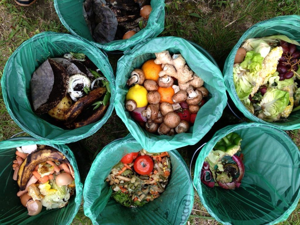 Users can take home products and produce in these shopping bags and then reuse them to collect organics for composting