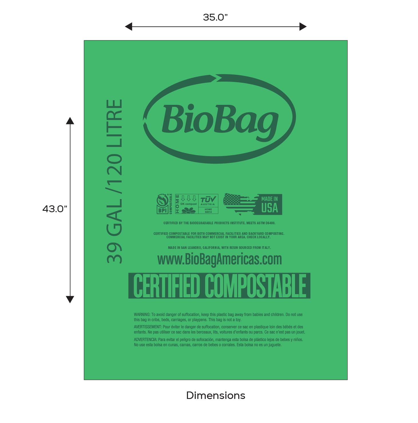BioBag (USA) The Original Compostable Bag, 39 Gallon, 120 Count, 100% Certified Compostable Trash Bag Liners for Food Waste, Extra Strong and Durable, Trash Bag