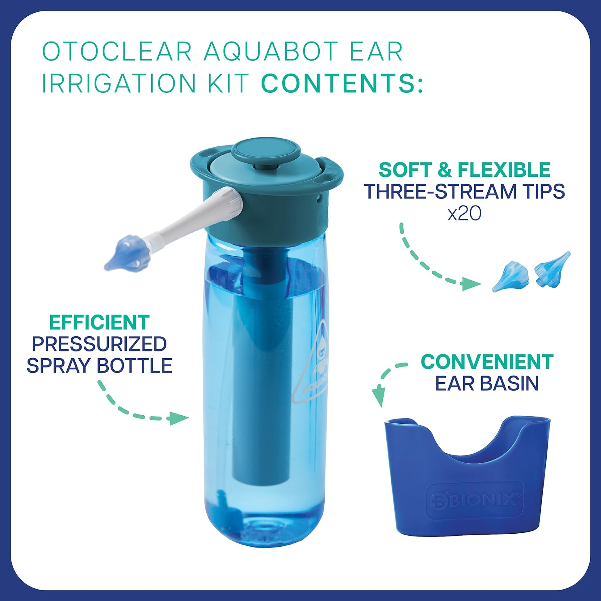 INCLUDED IN THIS KIT: (20) OtoClear Tips, (1) Aquabot Bottle, & (1) Ear Basin
