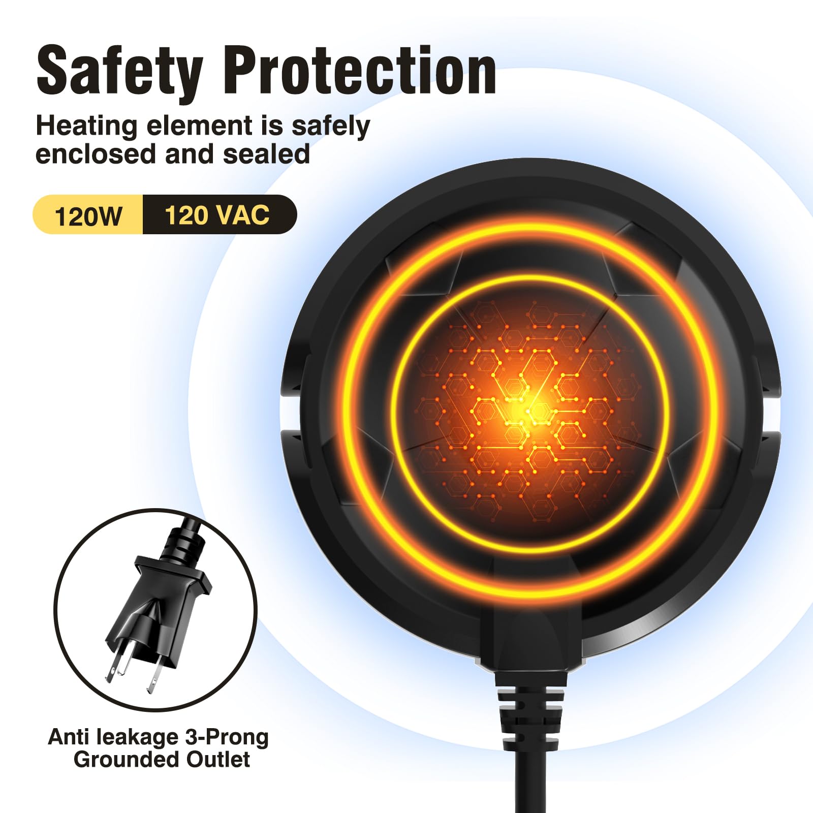 【Powerful 120W Bird Bath Heater】Enhanced 120V 120W Outdoor Birdbath Water Heater Thermostat Control, lasting heat release, power is upgraded to 120W with higher thermal conductivity ensures effective deicing and heating, which can help birds survive the winter by keep the birdbath from freezing even in the cold winter months!