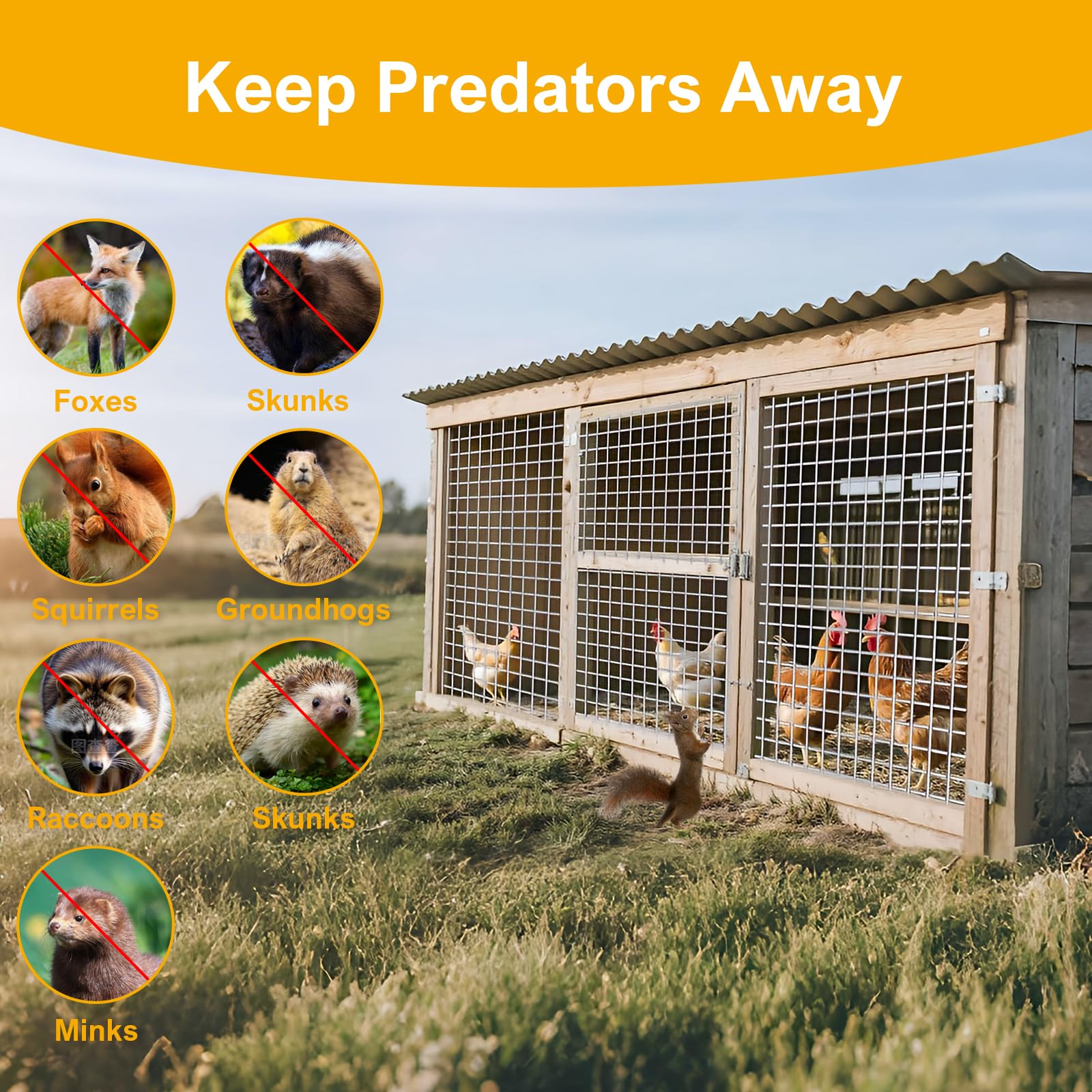 【1/2inch Openings】 The chicken wire mesh is 1/2" x 1/2" square openings, which is small enough to keep weasels, rats and most animals out while allowing airflow. Effectively prevent your chickens, ducks, rabbits and other farmed animals and vegetables, tomatoes, strawberries and other fruits and vegetables from being entered by small animals such as snakes, voles, gophers and so on.