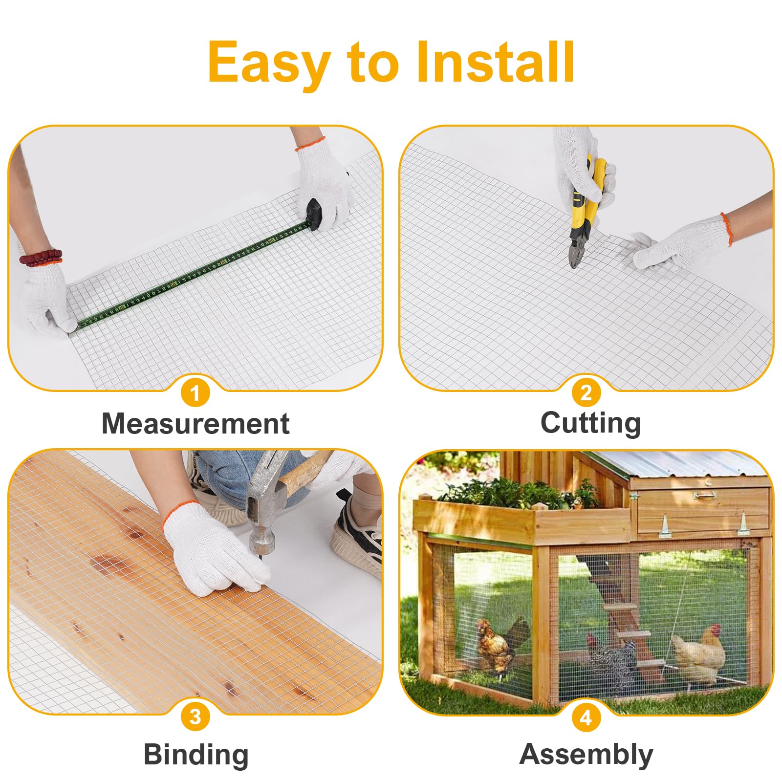 【Wide Range of Applications】The flexibility and resilience of wire mesh fencing make it suitable for a wide range of applications. It is suitable for chicken coop, rabbit cage, poultry fences, chicken run wire mesh, vegetable garden, tree guard, raised garden bed guard, home decoration works, handicrafts making, etc.