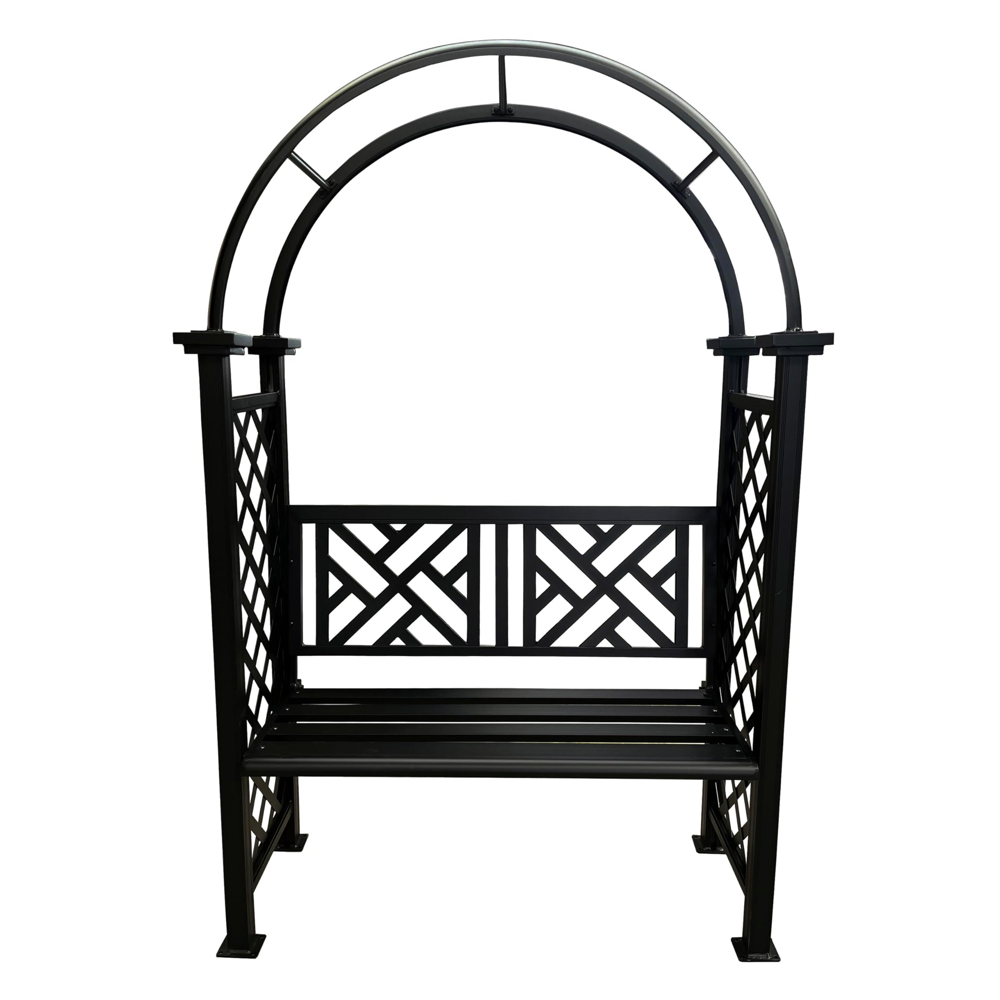 Black Aluminum Garden Arbor Arch with 2-Seater Bench