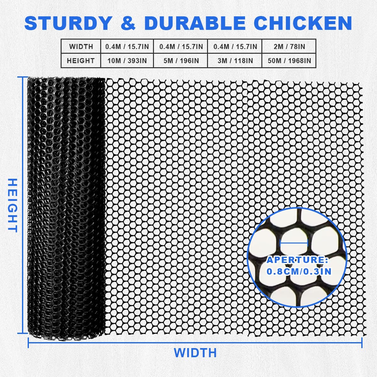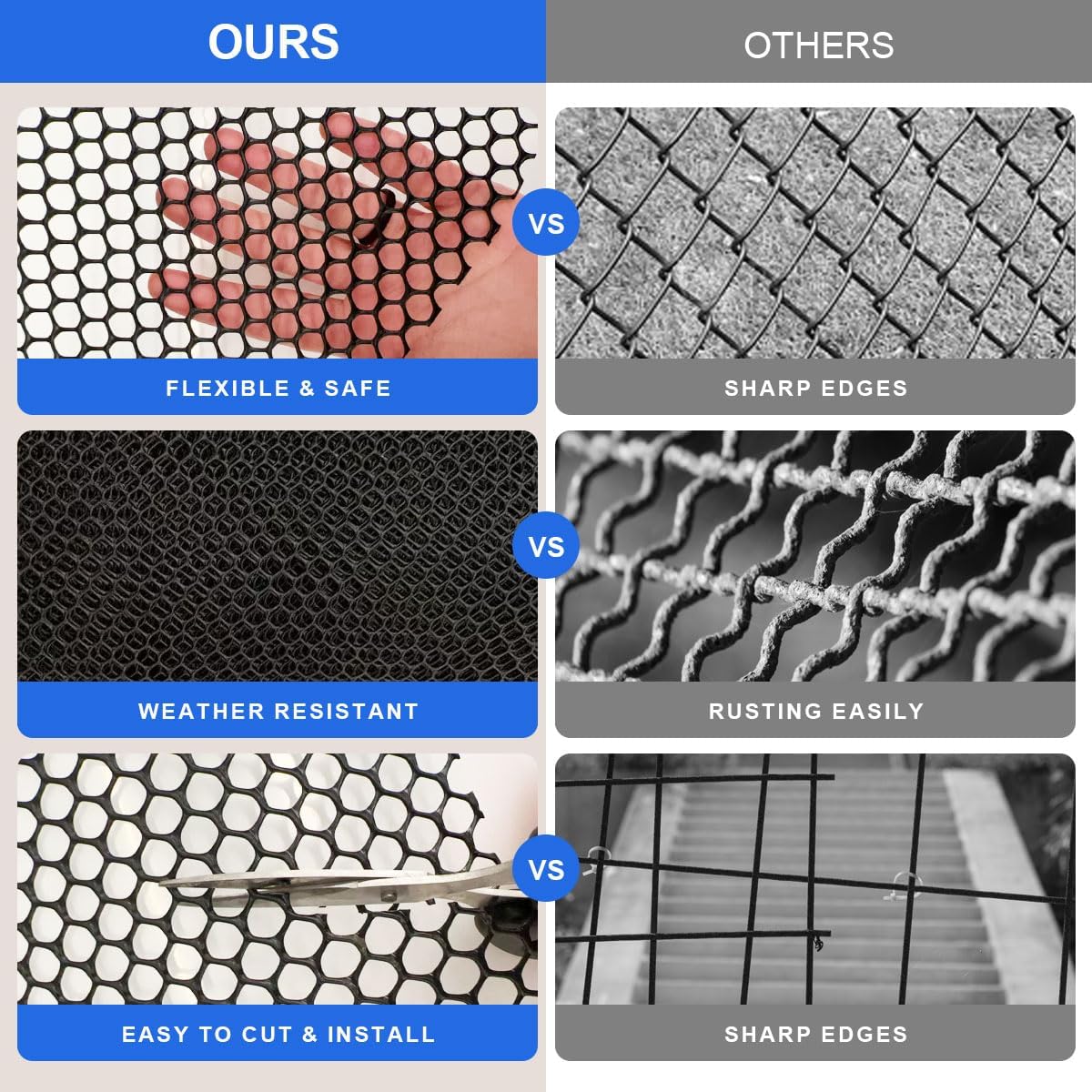 【Easy Install with DIY‑Friendly Design】The mesh fencing can be trimmed with standard scissors and secured with zip ties or stakes (not included). No tools required—perfect for quick installation of pet/Poultry fencing, garden borders, or balcony barriers.
