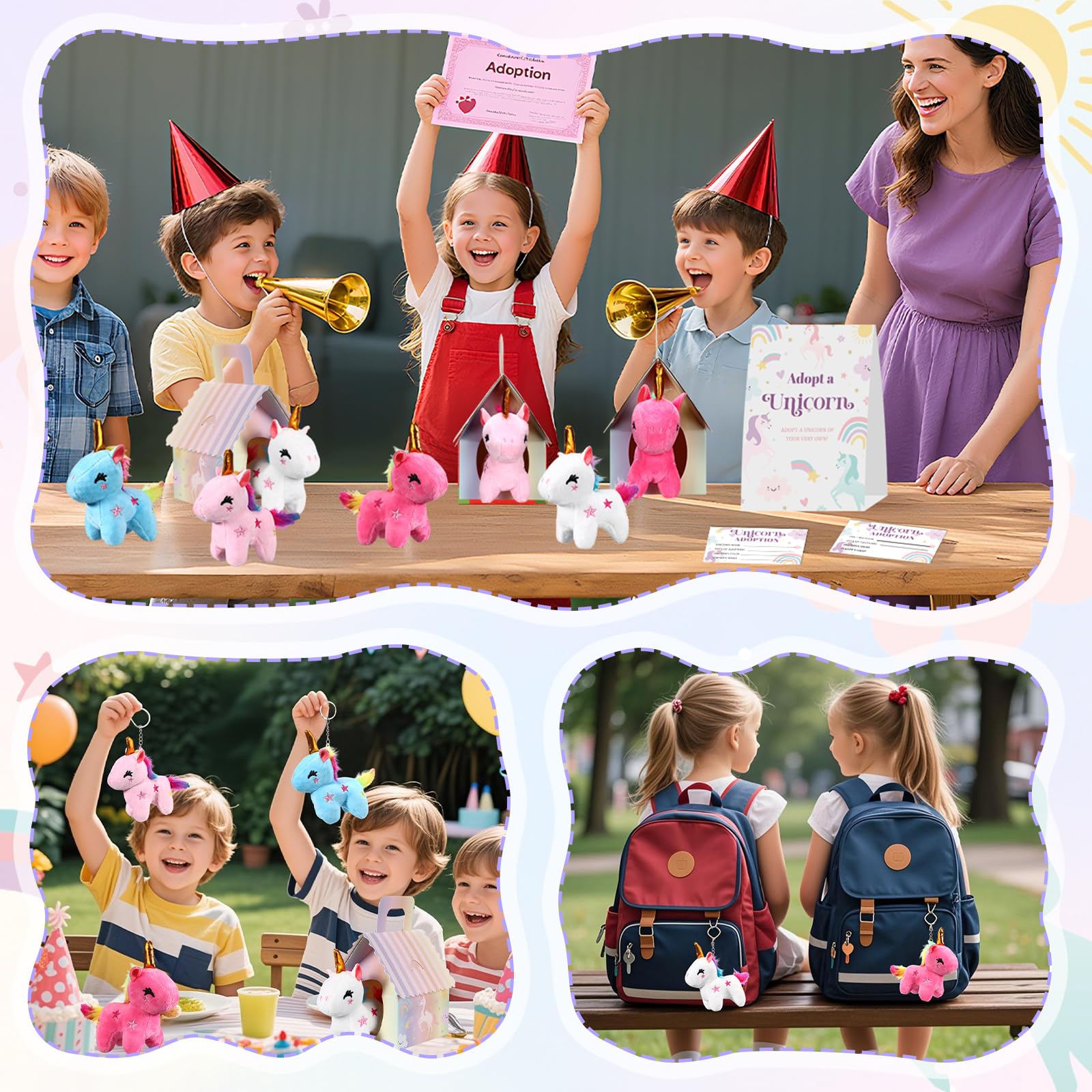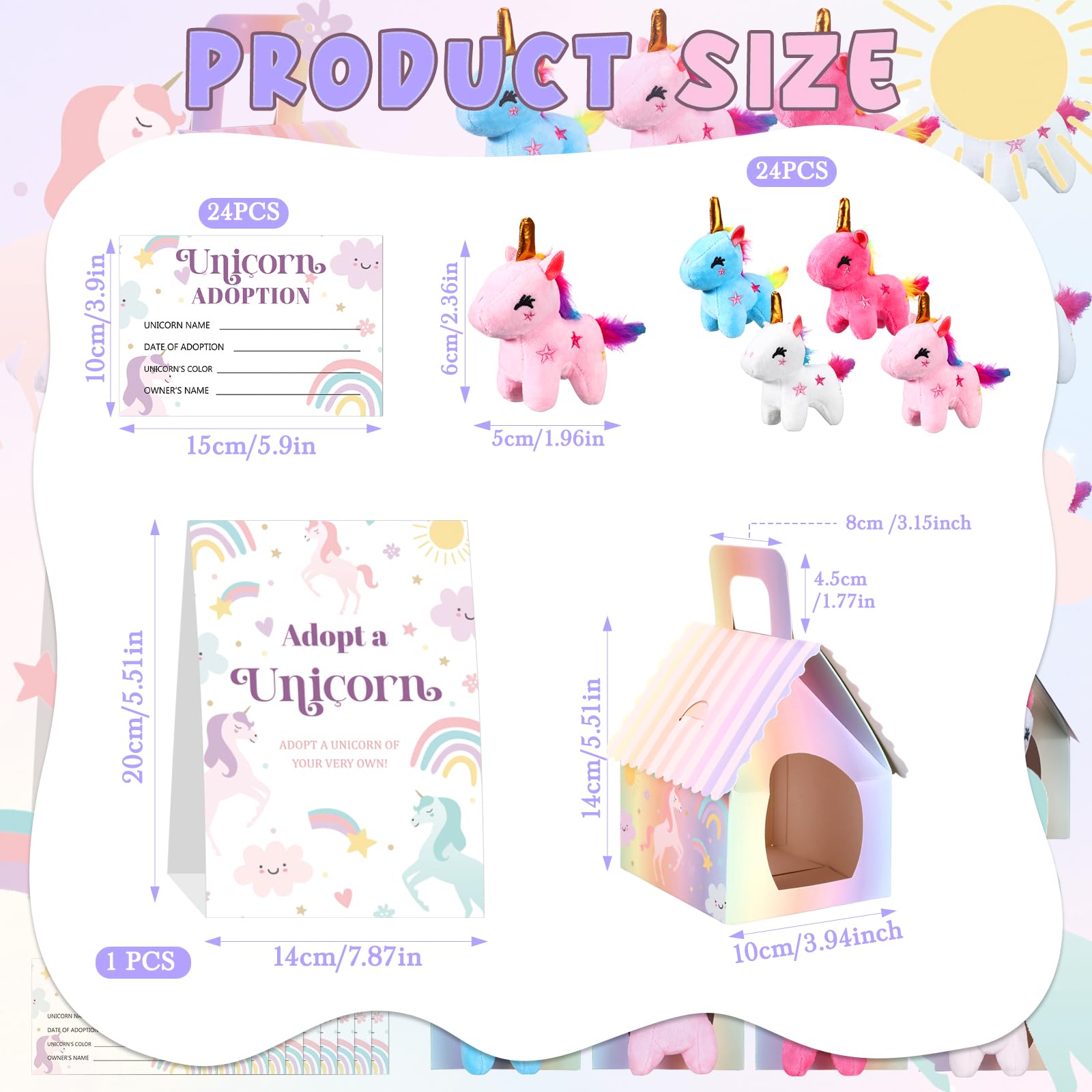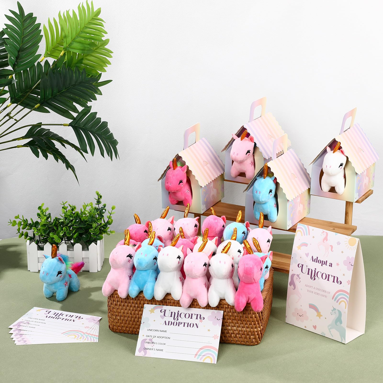 Blueweenly 73 Pcs Adopt a Unicorn Party Favors Set for Girl Mini Plush Unicorn Stuffed Animal Gift Box Adoption Card 1 Animal Sign with Carton House for Adopt a Pet Party Favor Birthday Supply (Cute)