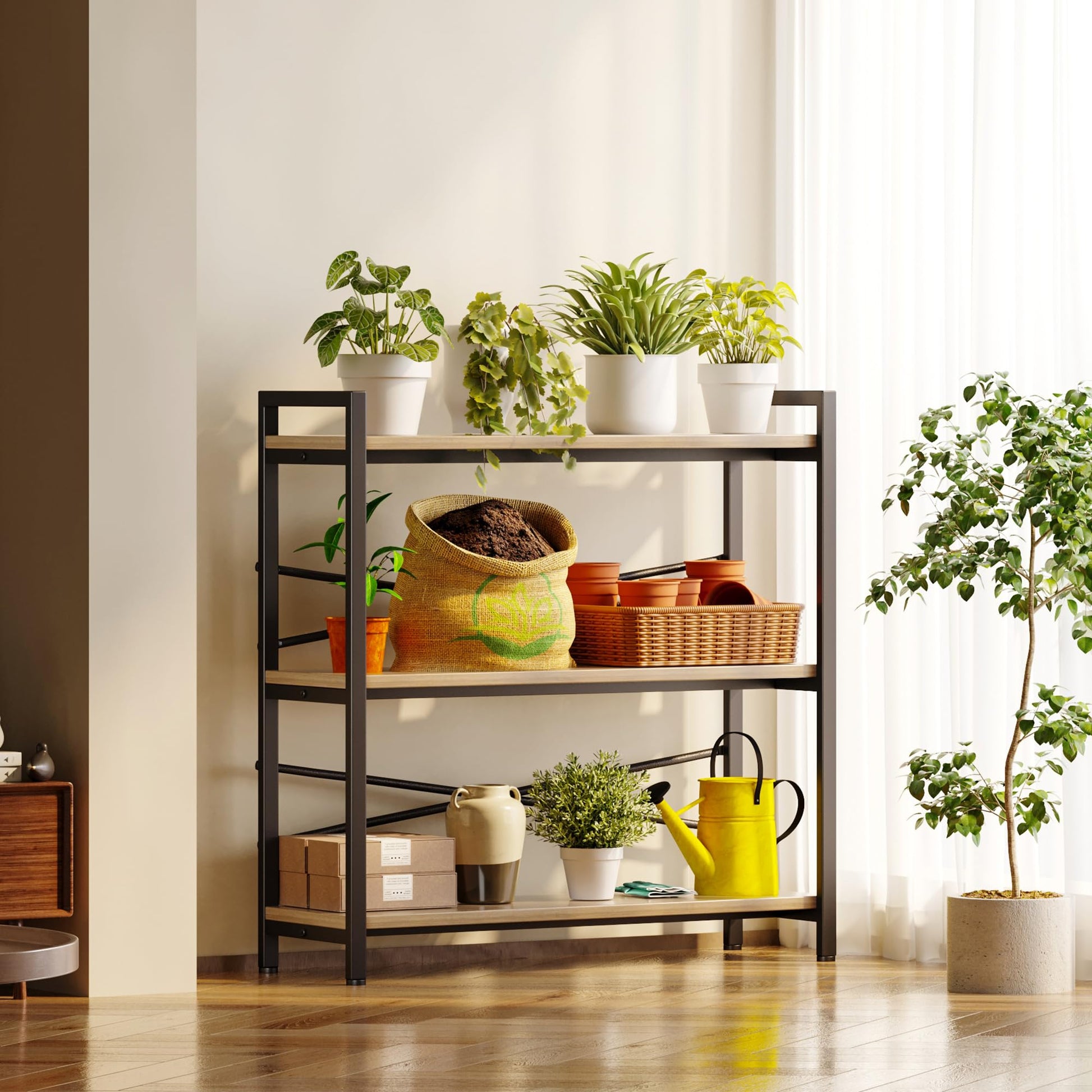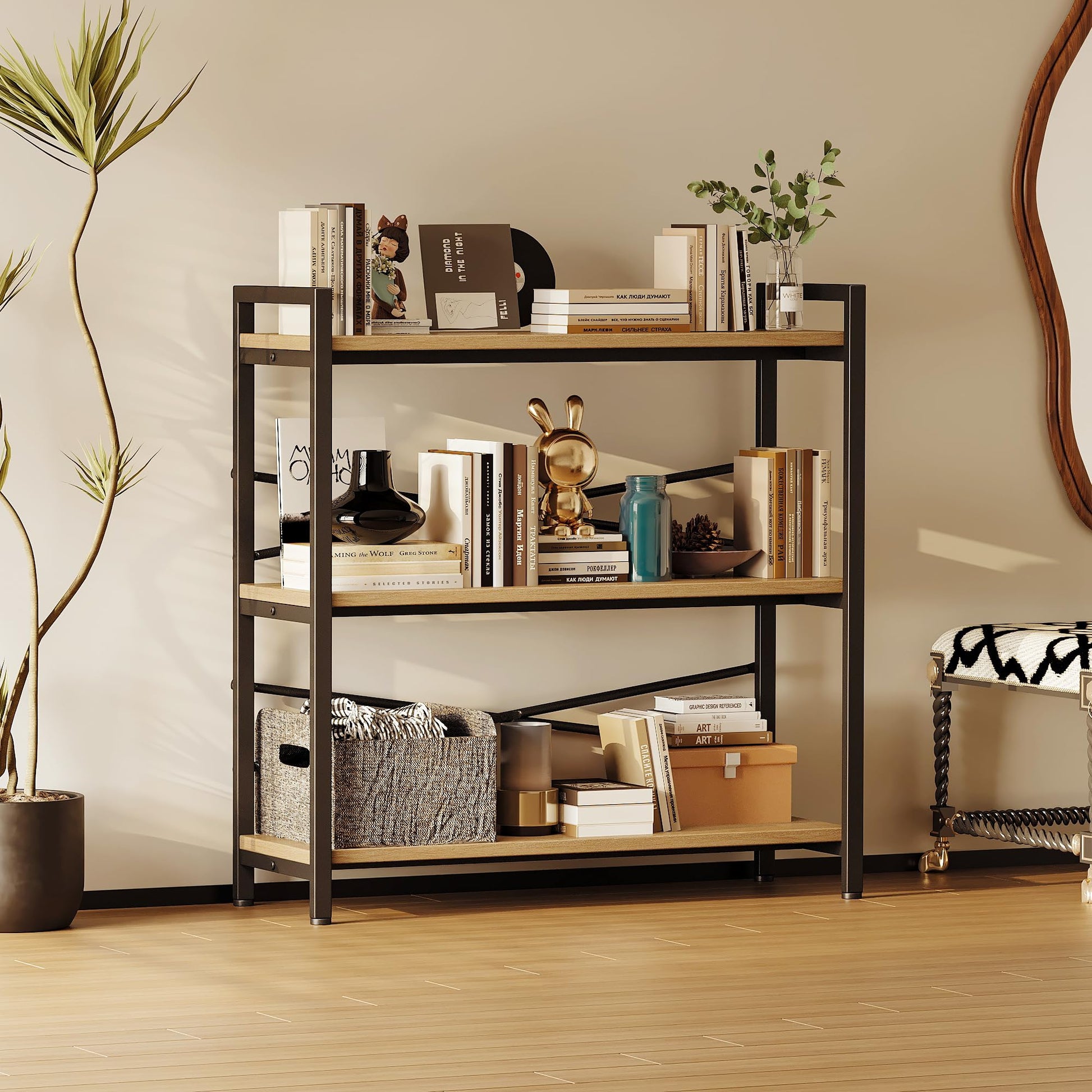 Book Shelf, 3 Tier Bookshelf 31.49" Width, Book Shelf Storage and Organization, Wooden and Metal Industrial Bookcase, Large Book Shelves for Home Living Room Bedroom Office Storage(Light Coffee)