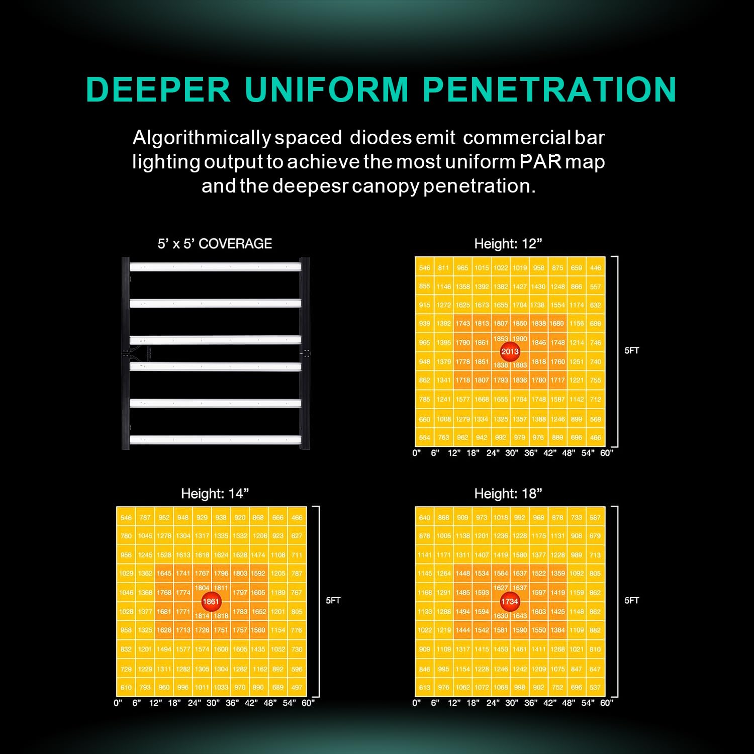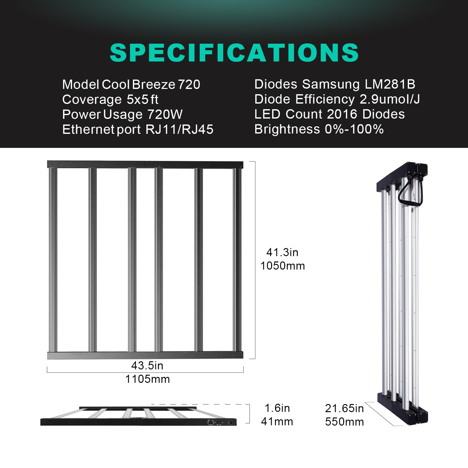 MAXIMIZE YIELDS & CROP QUALITY - BQHY H720W led plant growing light is with high efficient LM281B chips, only consumes 720w with 2016 LEDs, achieving higher average PPFD with 1476μmol/㎡/s at 5x5ft core coverage. The average yield is more than 2.8g per wattage. The H720w led bar grow light can help you achieve maximum quality and quantity. Wide Input Voltage 100-277V, can meet most input voltage.