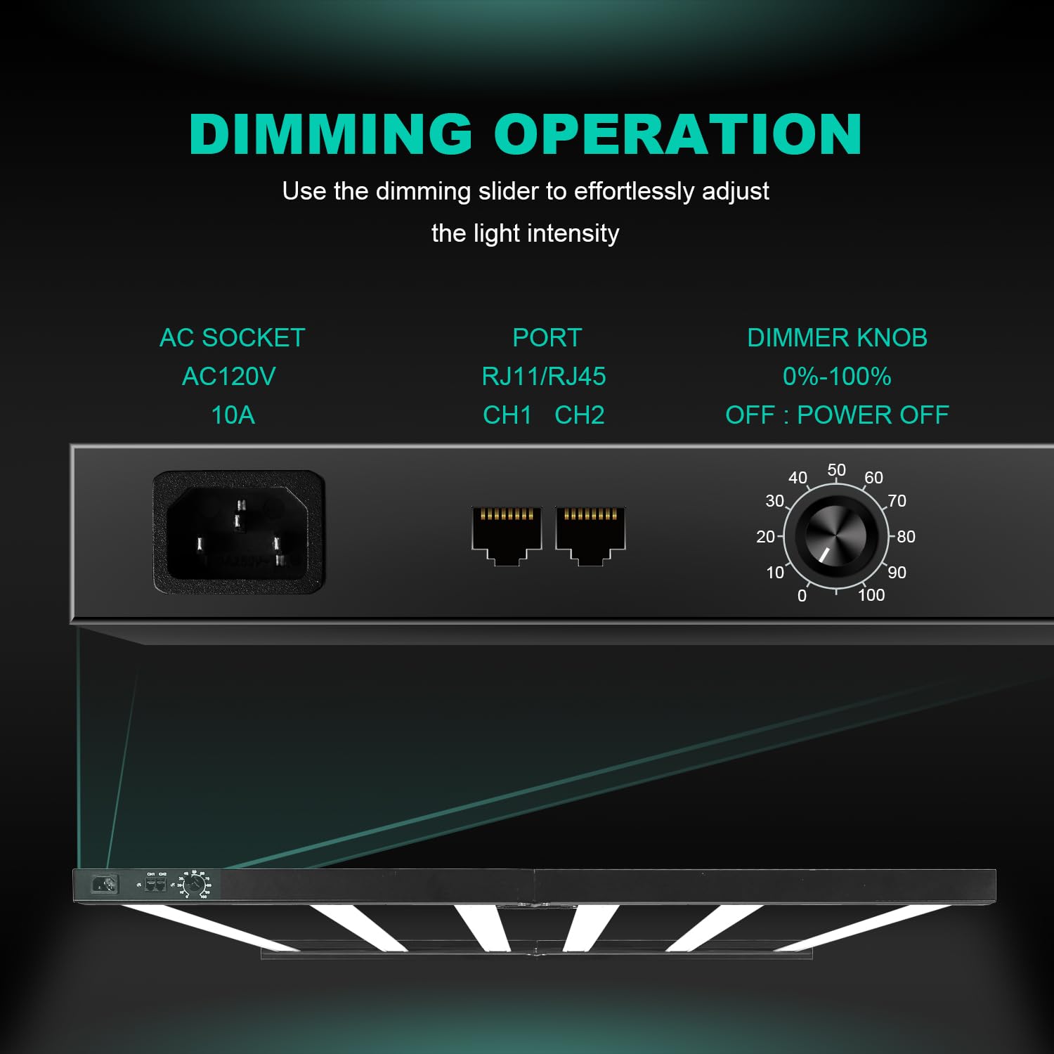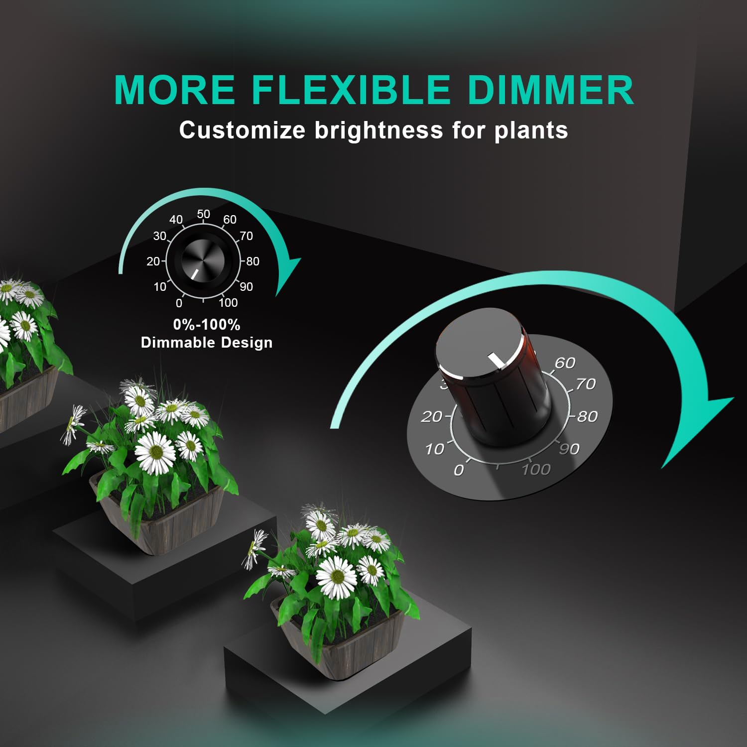 FULL SPECTRUM DIMMING - BQHY H720W led grow light consists of full spectrum Warm White3000K, Cool White 5000K, Red 660nm, is infinitely close to natural sun light, perfect for seeding to flowering, applied to the whole stages of indoor growing plant. Growing lamp H720w comes with flexible dimmable function, 4-level dimming knob from 0-100% available, convenient to adjust the brightness according to the plants at different growing stages.