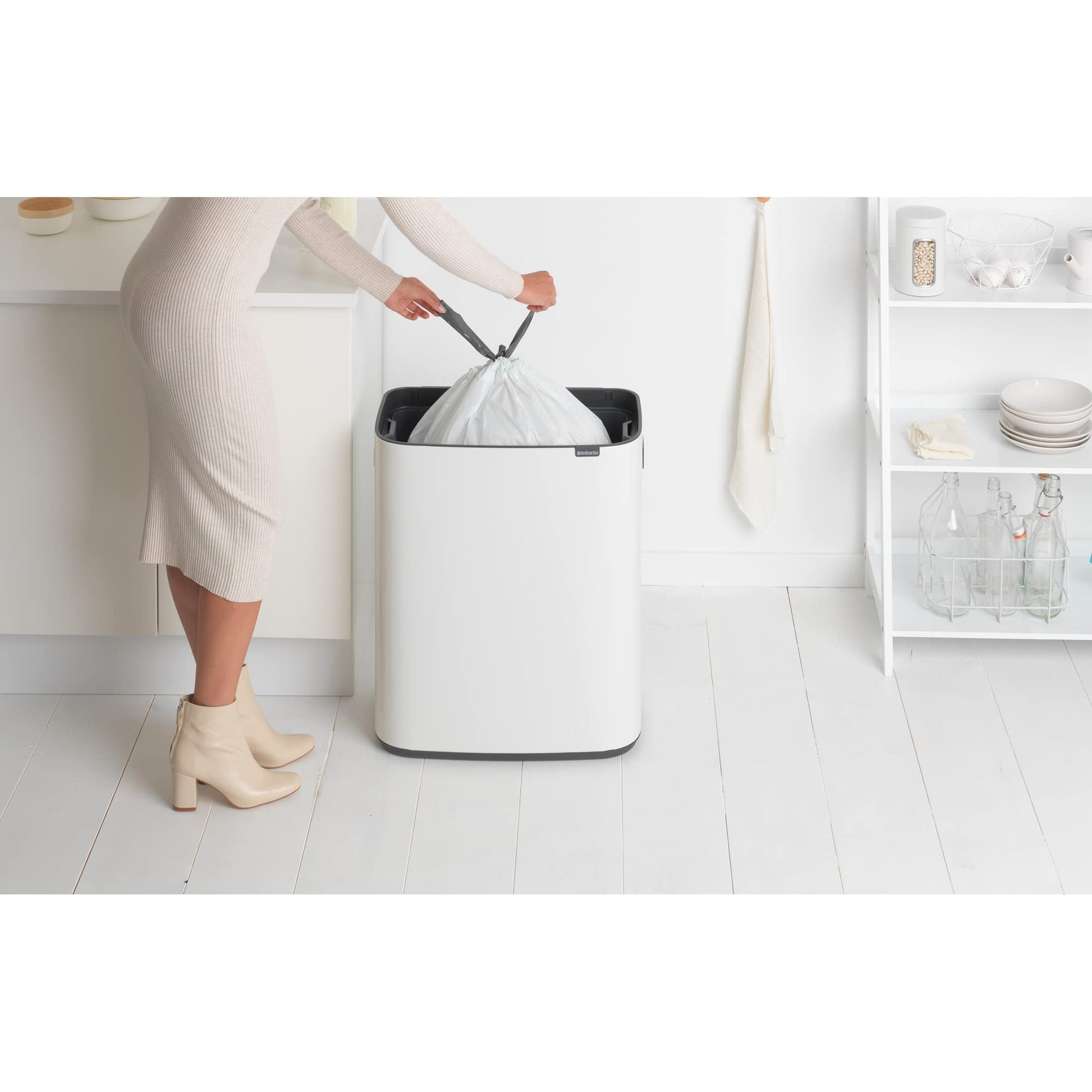 Brabantia Bo Touch Top Trash Can - 1 x 16 Gal Bucket (White) Soft Open/Close Kitchen Garbage & Recycling Can with Removable Compartment
