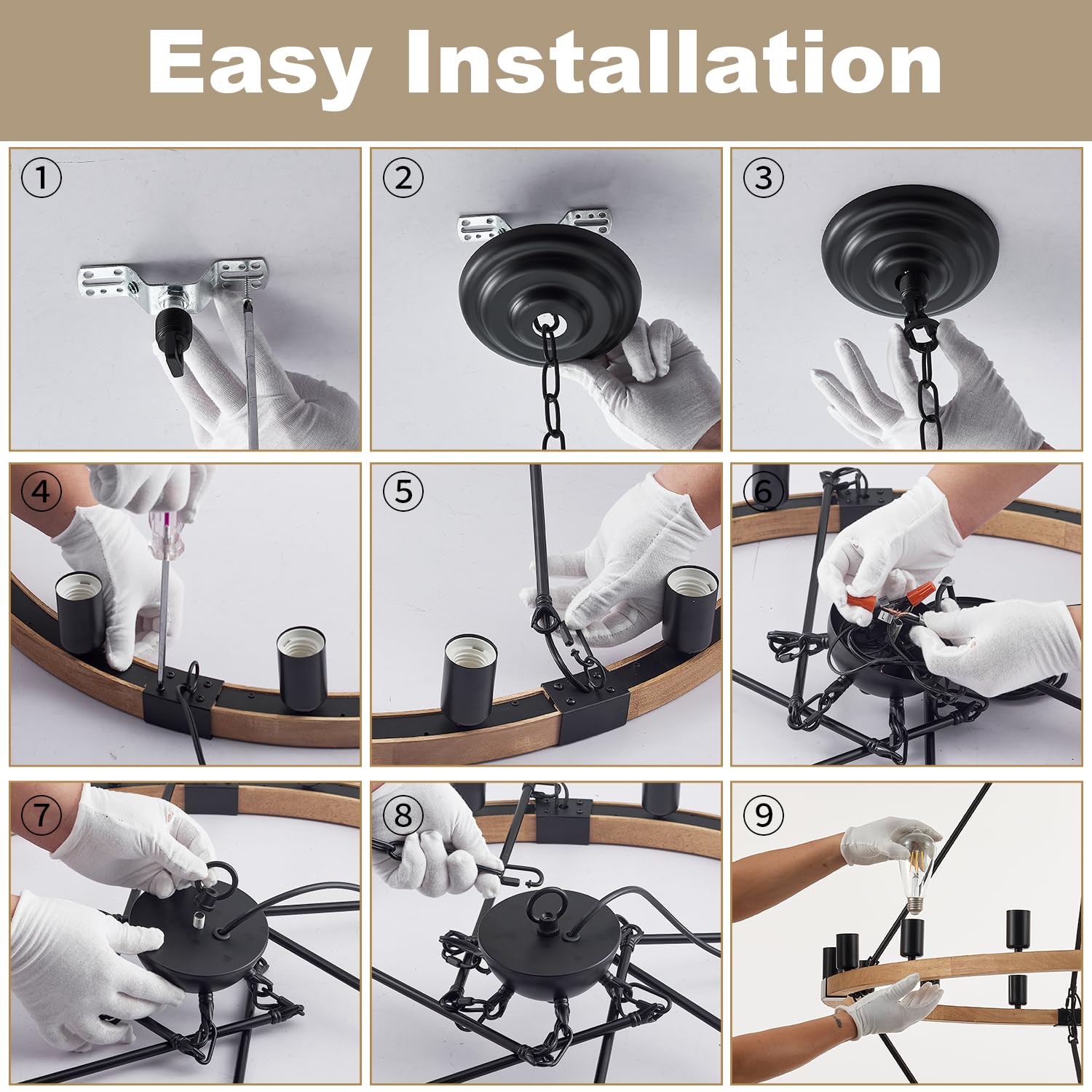 Easy Installation: The rustic wagon wheel chandelier high ceiling is a complete set of detailed installation instructions, and hardware accessories are included in the package for your easy installation. You can choose to install this hanging ceiling light fixture to a flat ceiling or sloped ceiling as you need.