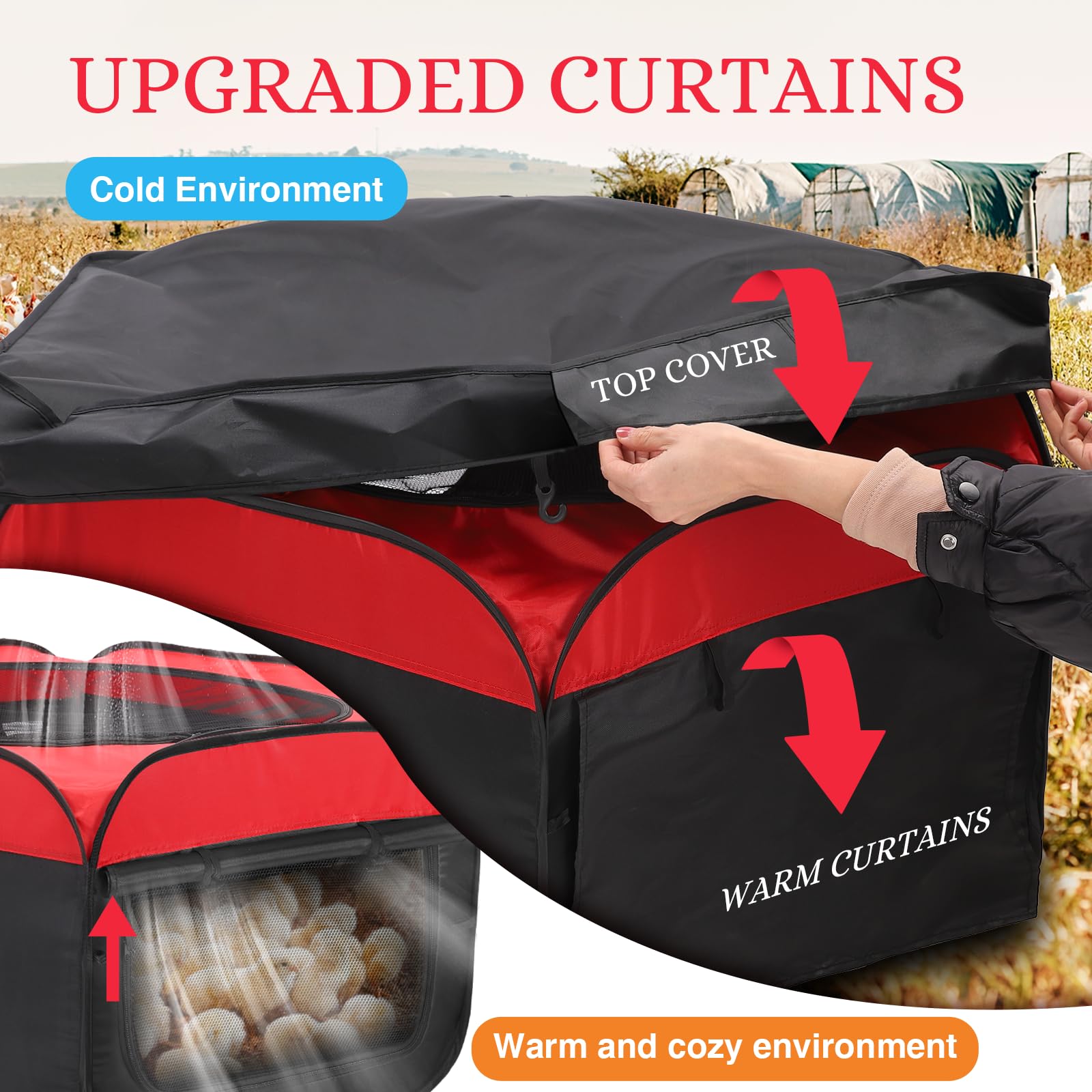 Pop-up Brooder Playpen: Includes a pop-up brooder playpen, insulation mat, top cover, waterproof mat, and storage bag for a convenient and safe environment for baby chicks, ducks, or quail.