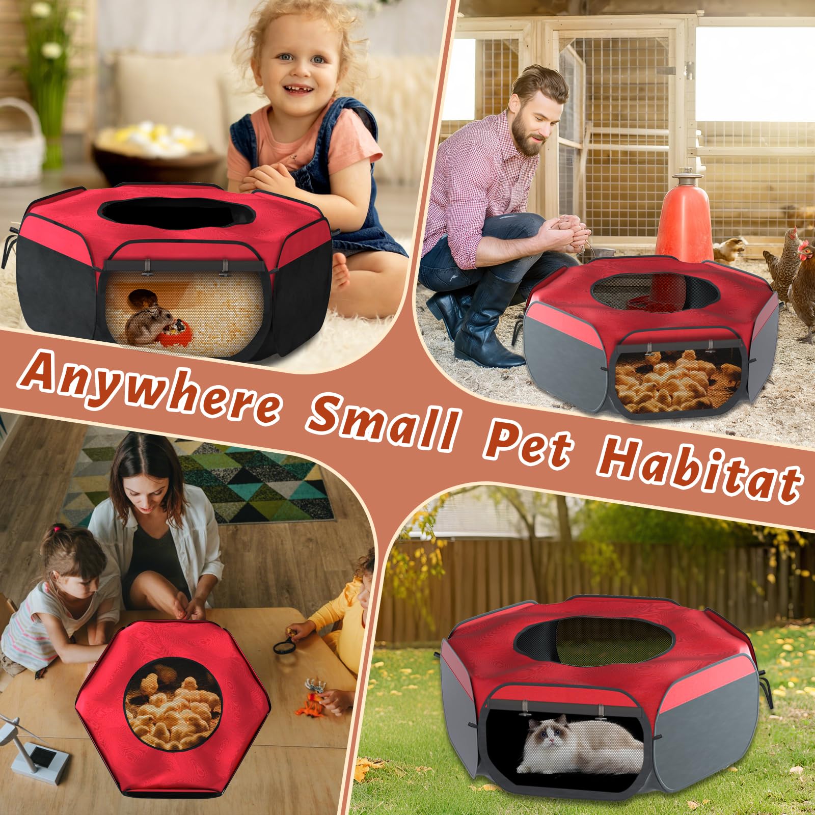 Easy to Clean & Store: Crafted from durable, water-resistant Oxford cloth, the chicken brooder tent is quick to clean and built to last. Wipe down or rinse as needed. When you're finished, the entire unit folds down into a compact storage bag—perfect for seasonal use or transport. Easy setup. Easy clean-up. No tools required