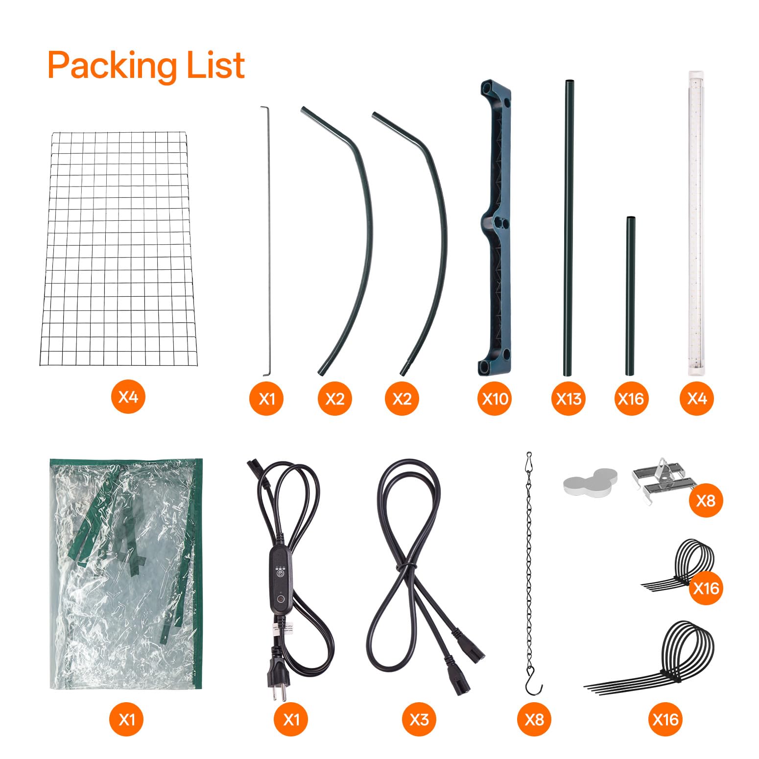 Energy-Saving Full Spectrum Plant Light- Designed for year-round cultivation, this indoor greenhouse with grow light integrates four T8 LED grow light bars(23.6-inch, 24W each) emitting full spectrum light with 660nm red wavelengths to support photosynthesis. The lighting system supports healthy seedling development, making it suitable for dark corners or winter months when natural light is limited