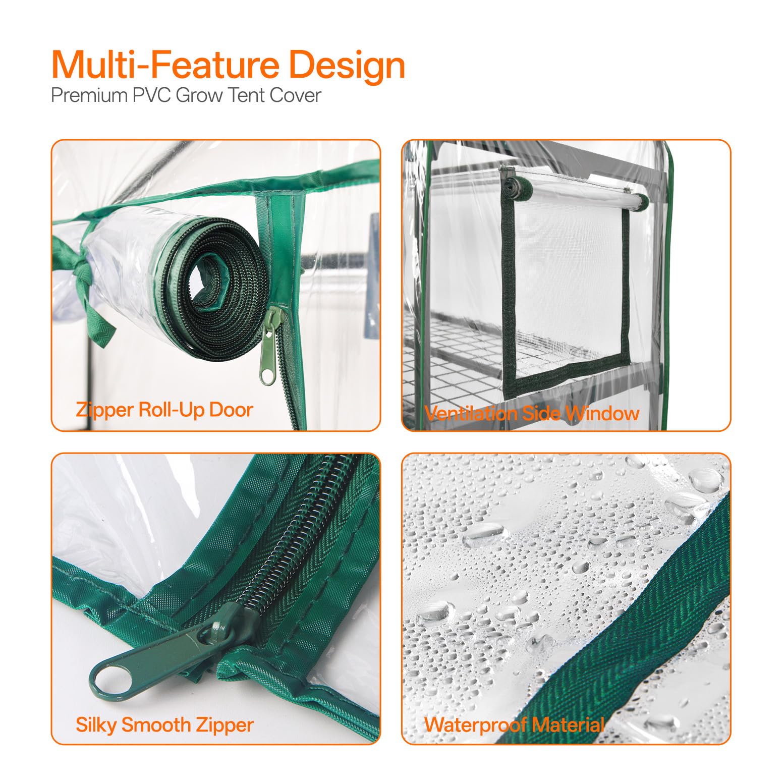 Space-Saving 4-Tier Greenhouse with Expansive Capacity - This 4-tier indoor greenhouse (35"L×19.3"W×63"H) maximizes vertical growing space while occupying minimal floor area — perfect for urban apartments, cozy living corners, or dedicated plant rooms. Each tier accommodates 9x12-cell seed trays alongside a large planter. This design transforms limited spaces into high-yield growing zones, perfect for Seed Starting