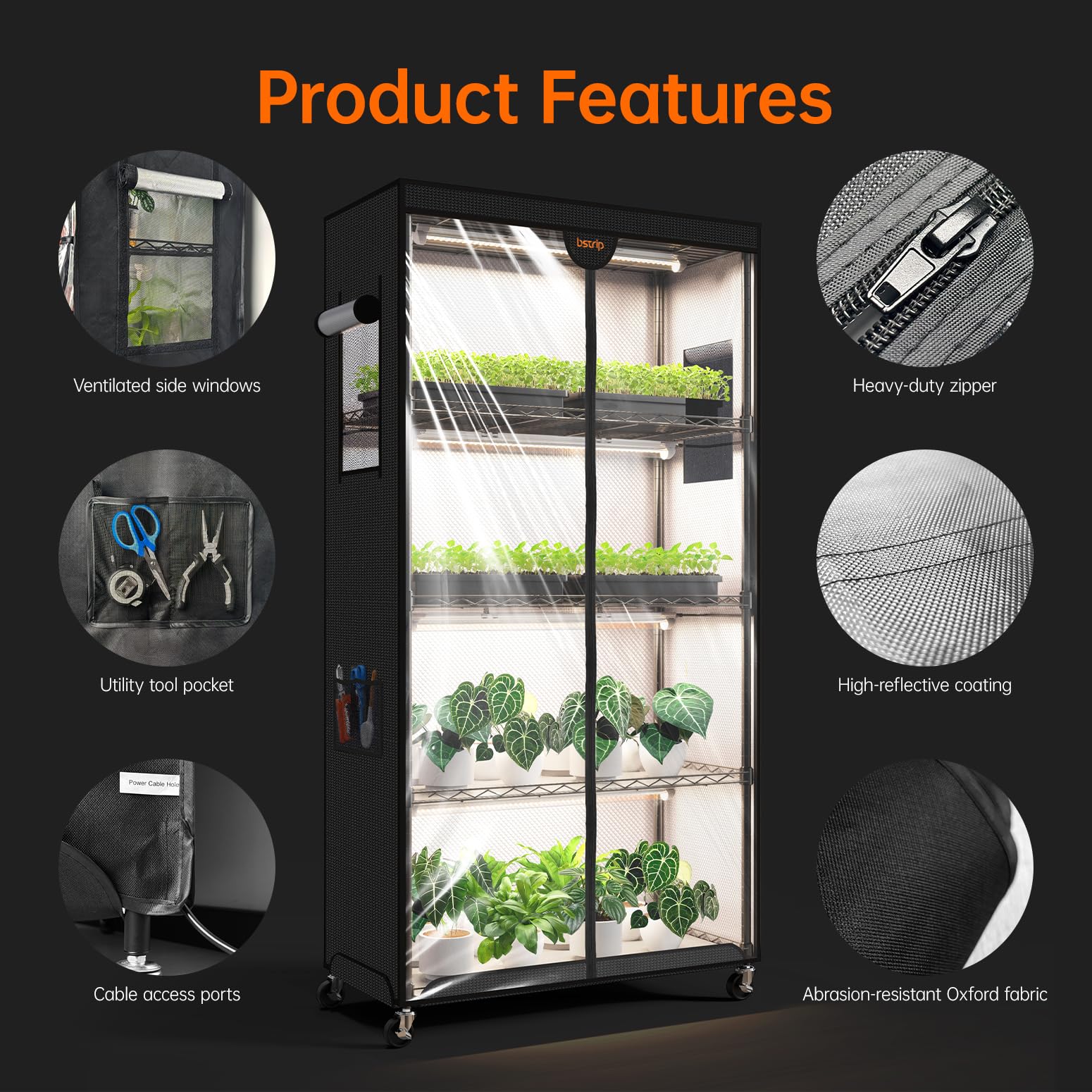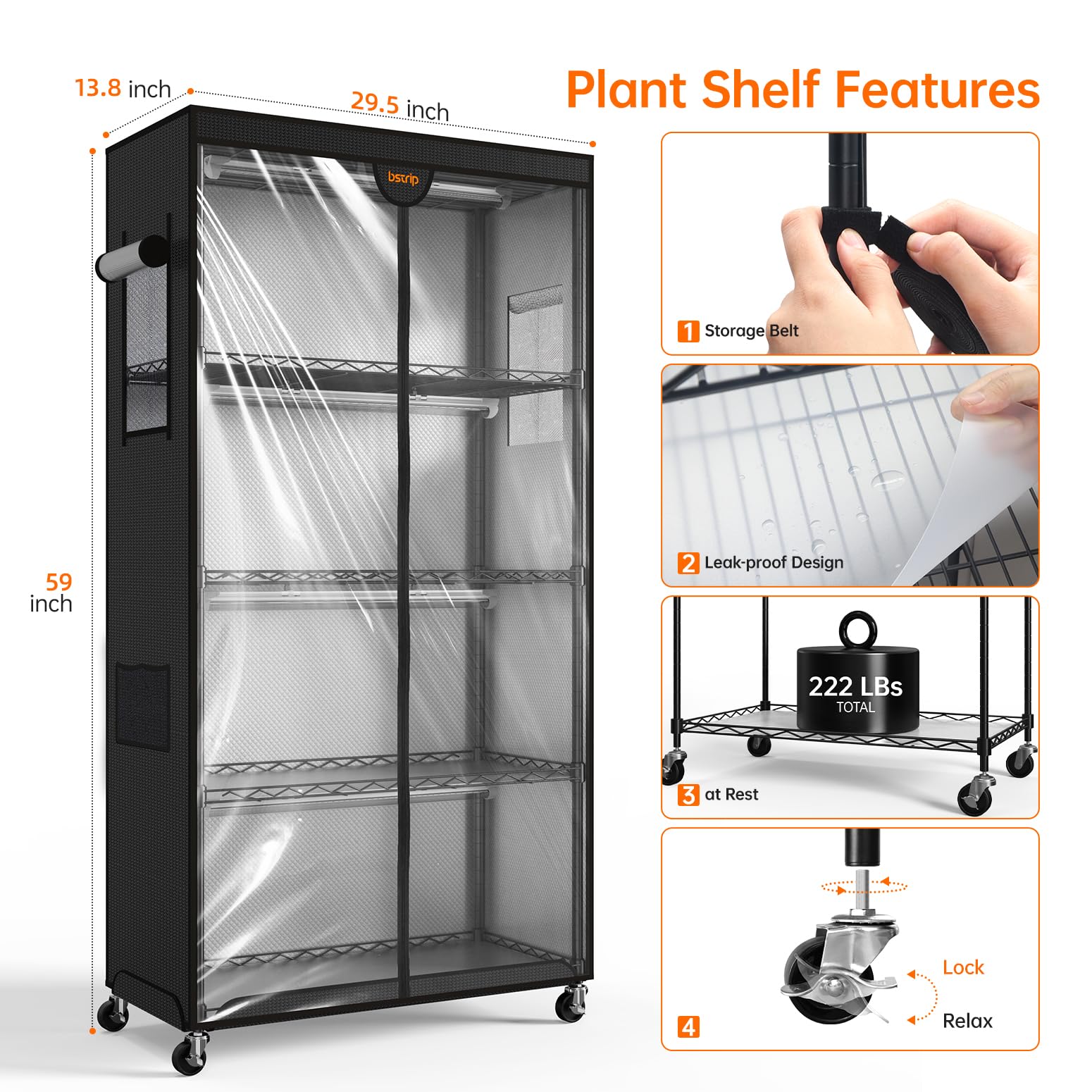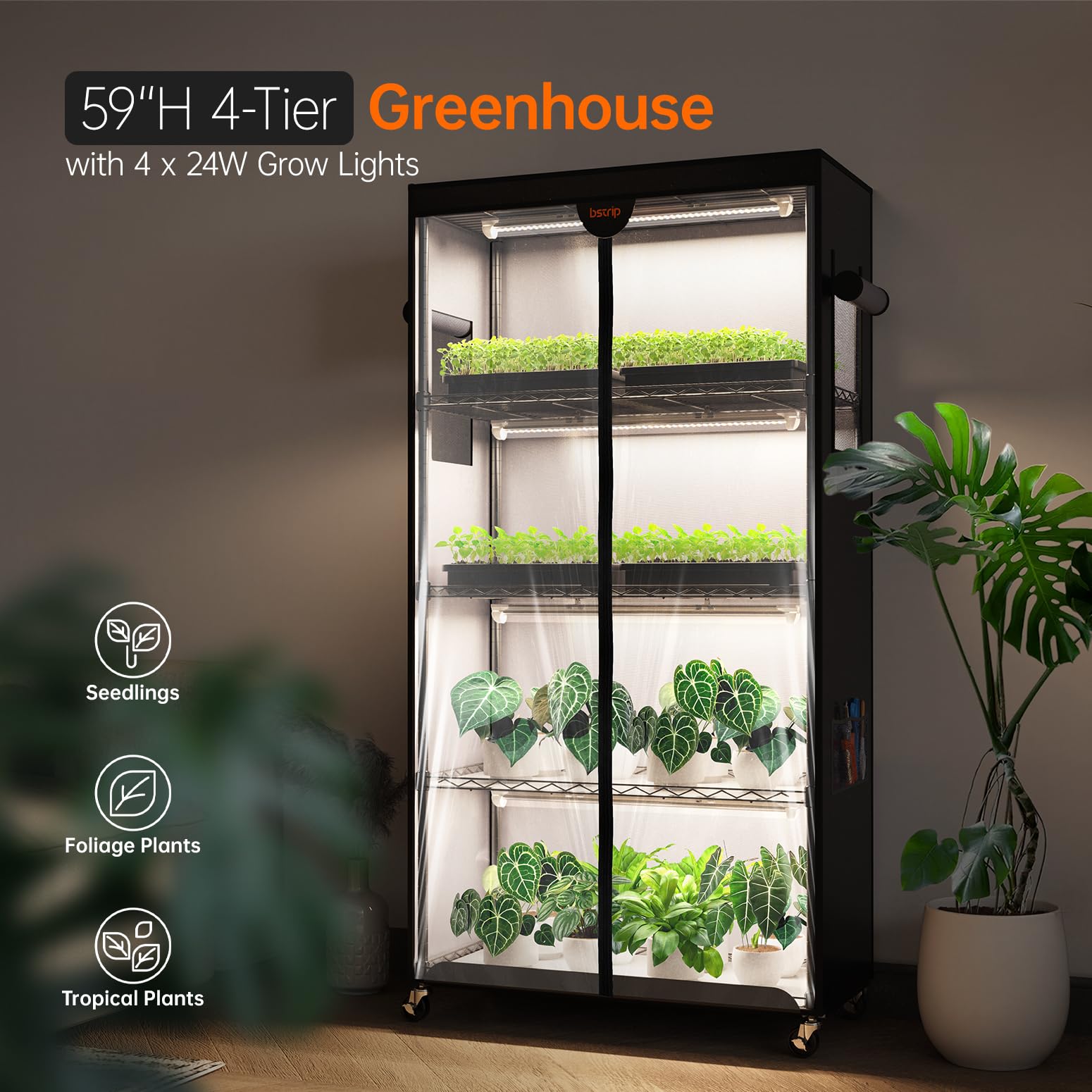 Bstrip Indoor Greenhouse with Grow Light, Plant Stand with 4 Pack 24W Full Spectrum Plant Lights , Plant Shelf with Tent for Indoor Plant, Seed Starting, Seed Tray, 29.5"x13.8"x59"