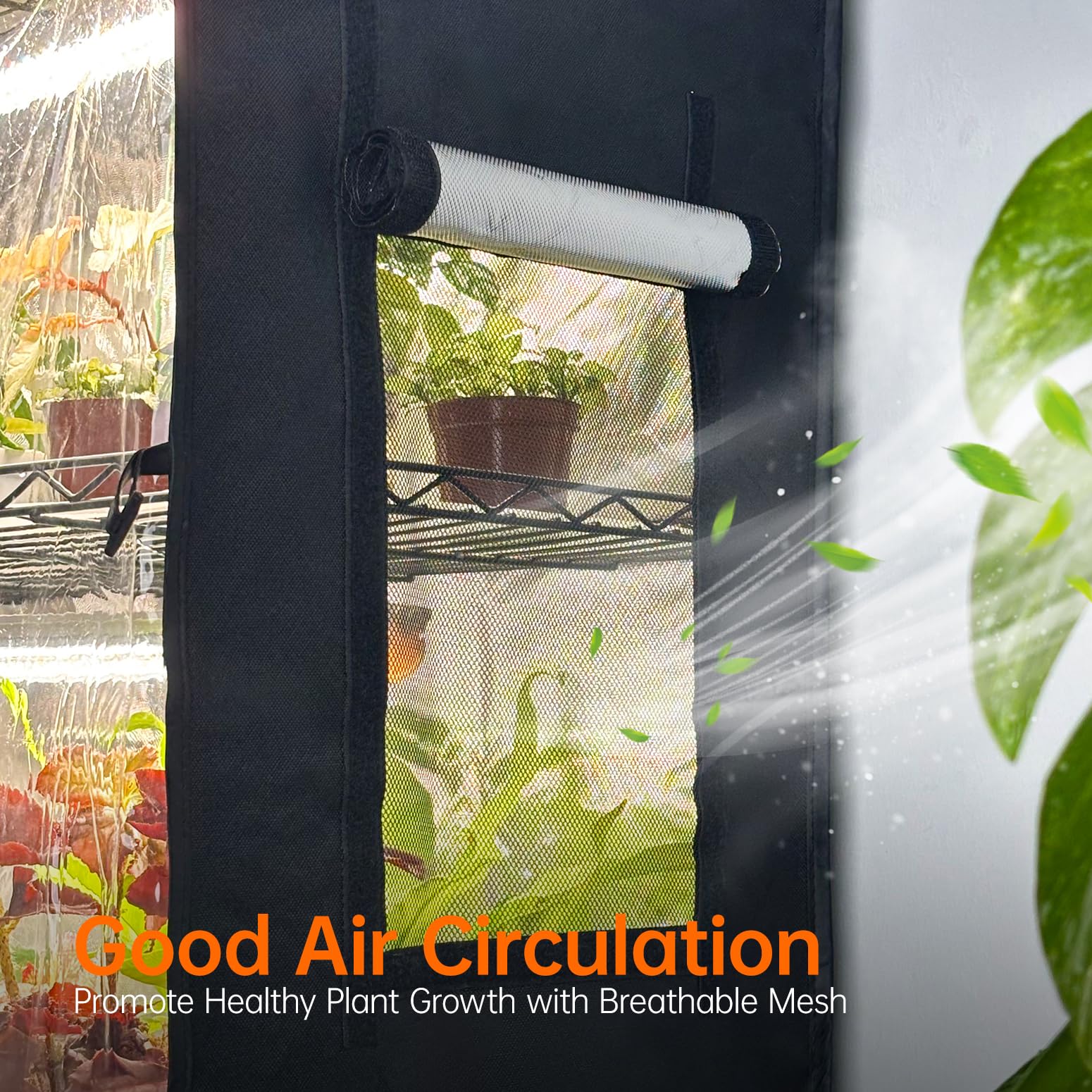 Upgraded Reflective Greenhouse Cover for Optimal Growth - Features durable Oxford fabric exterior and highly reflective aluminum inner lining to retain heat/humidity. The EVA door panels allow plant monitoring, while reinforced dual zippers and 4 vent flaps ensure easy access and adjustable airflow for plant health