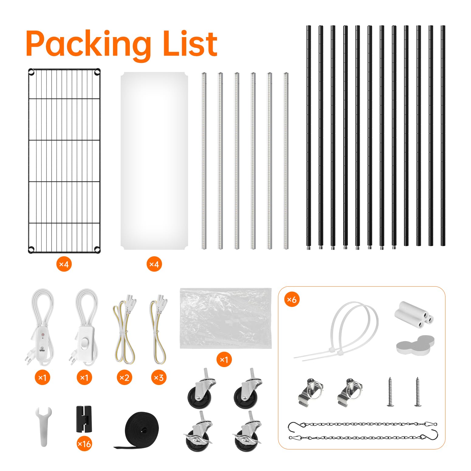 Easy Assembly and Mobility - Our greenhouse is designed for tool-free assembly and disassembly, making it incredibly convenient. It comes with four industrial wheels, two of which are equipped with locking mechanisms, providing both mobility and stability. Easily move your shelving unit or secure it in place as needed. Made from sturdy materials, it boasts excellent rust and oxidation resistance for long-lasting use
