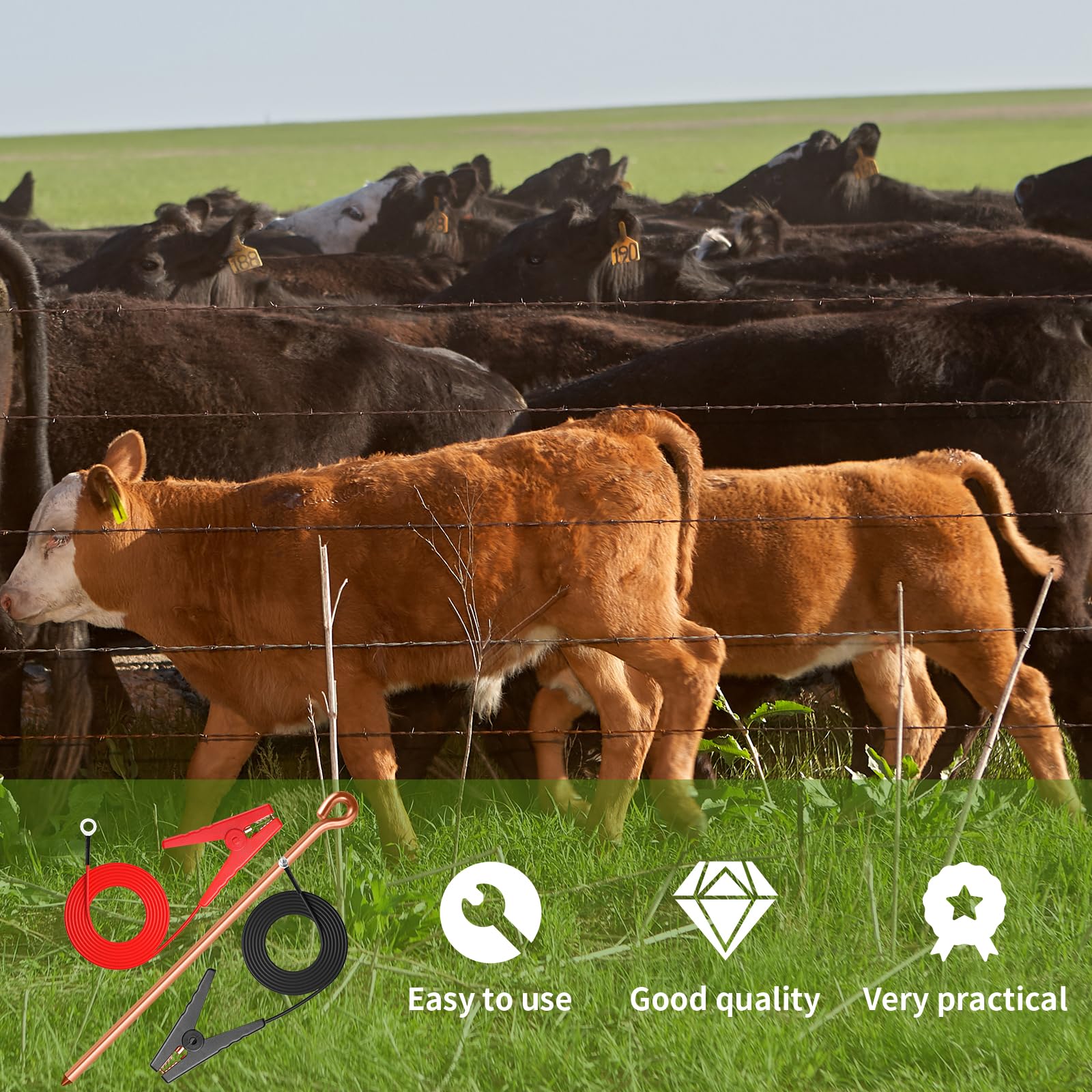 Superior Quality: Designed specifically for outdoor use, our electric fence leads feature alligator clips that securely fasten to grounding rods. Even in extreme weather conditions, they maintain a stable connection, ensuring long-term reliability.