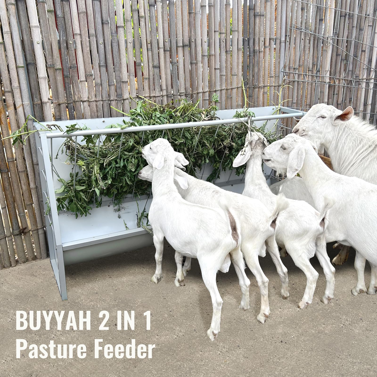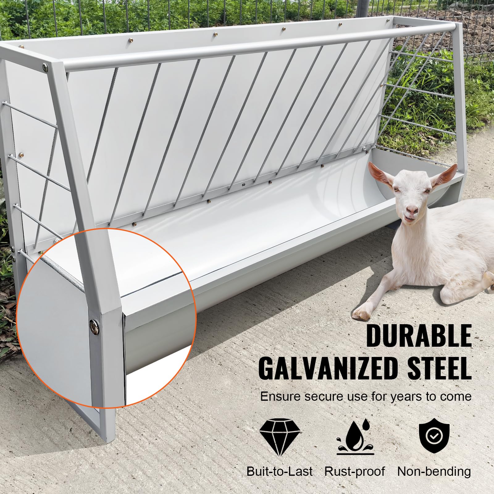Large Capacity: Our pasture feeder features a super large capacity of 35 gallon grass and 22 gallon shredded grass or grain. Only once feeding can the animals eat for several days. Item Size (L x W x H):60in x 16in x 31.5 inches.