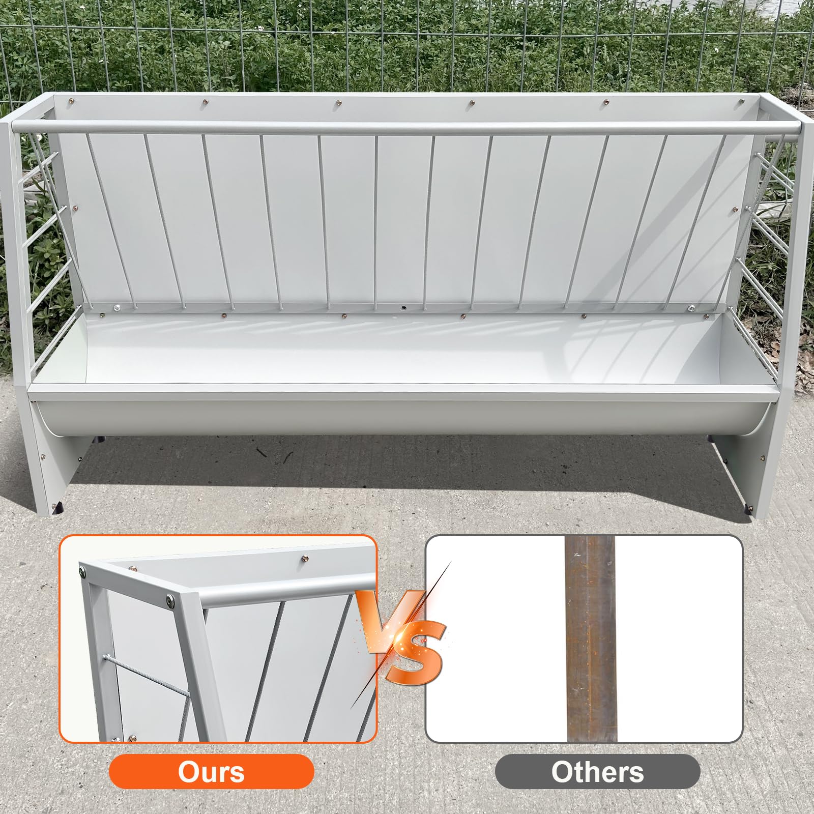 Unique Design: We use the seamless 2-in-1 design to better fit your fence or wall, it's a good helper for your feeding work, you can put the feed directly from one side to save space and labor.