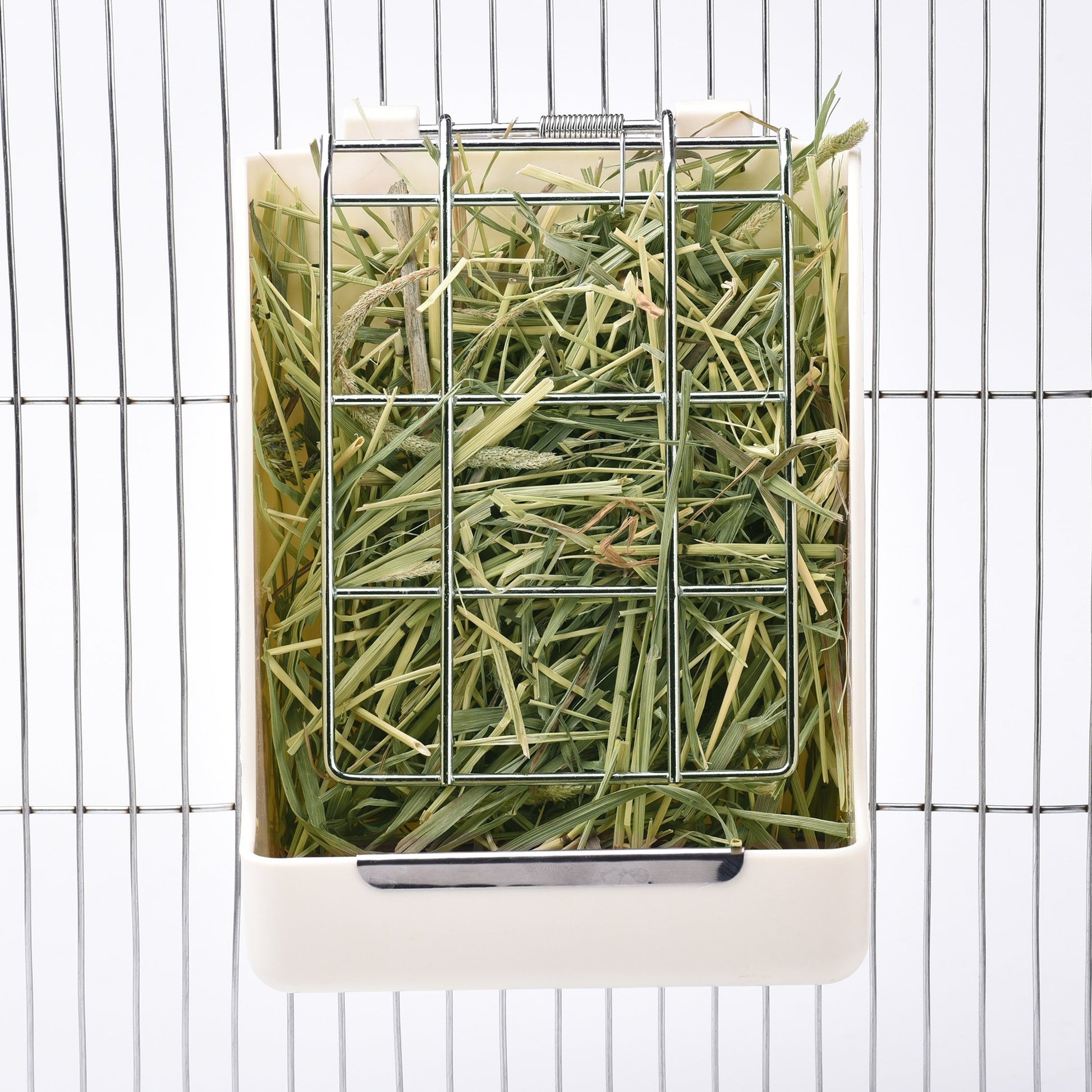 PET-SAFE, PREMIUM QUALITY RABBIT HAY FEEDER - This hay feeder is made from plastic but we can assure you that it's not the type that can harm your beloved pets. All materials are premium-quality and BPA-free. The feeder design follows safety standards with the metal grate having a spring mechanism that provides enough tension to hold the hay but is not strong enough to accidentally trap your pets.