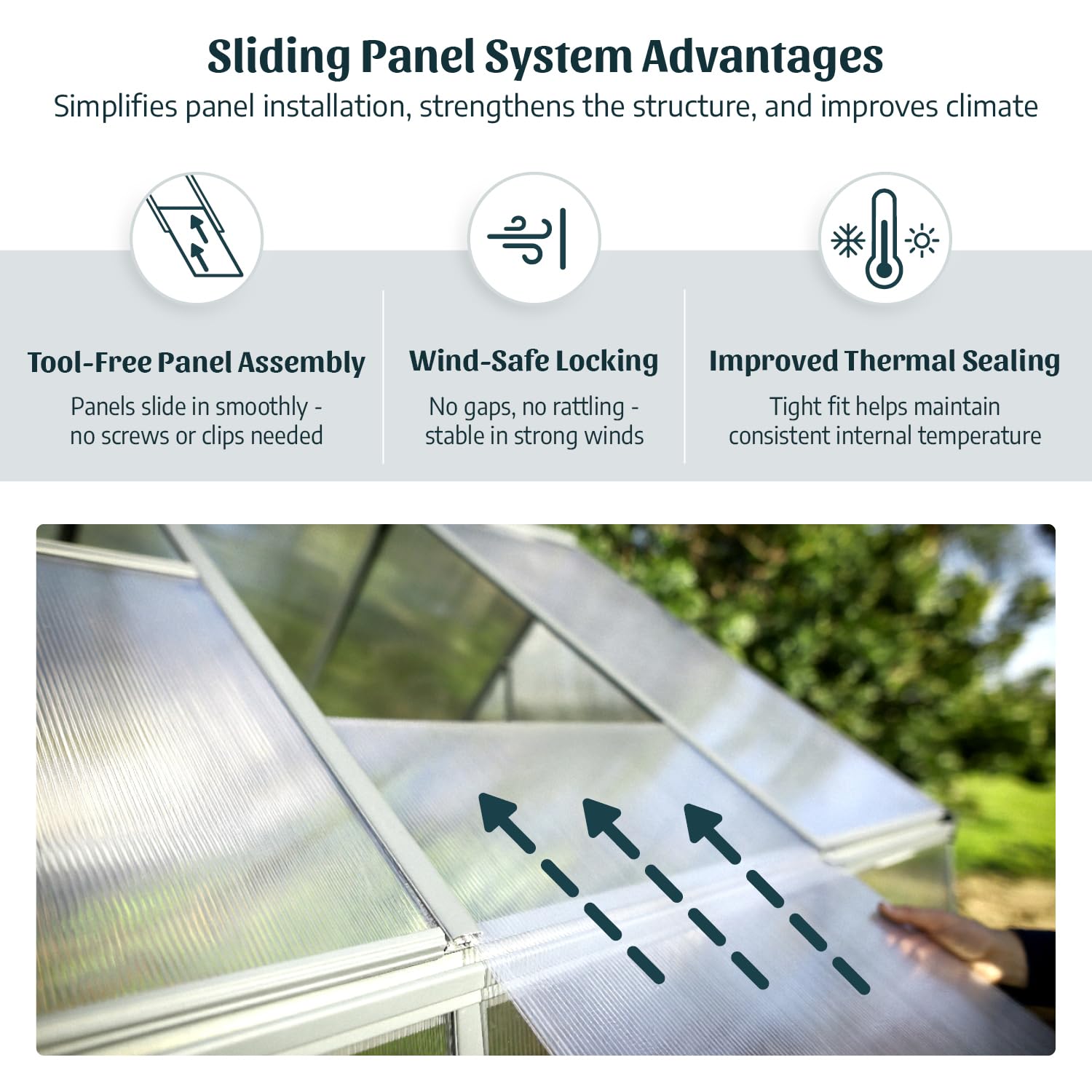 THOUGHTFUL ENGINEERING THAT OFFERS YEAR ROUND PROTECTION - Virtually unbreakable twin-wall 4mm polycarbonate panels provide over 70% light transmission with 100% protection from harmful UV rays.