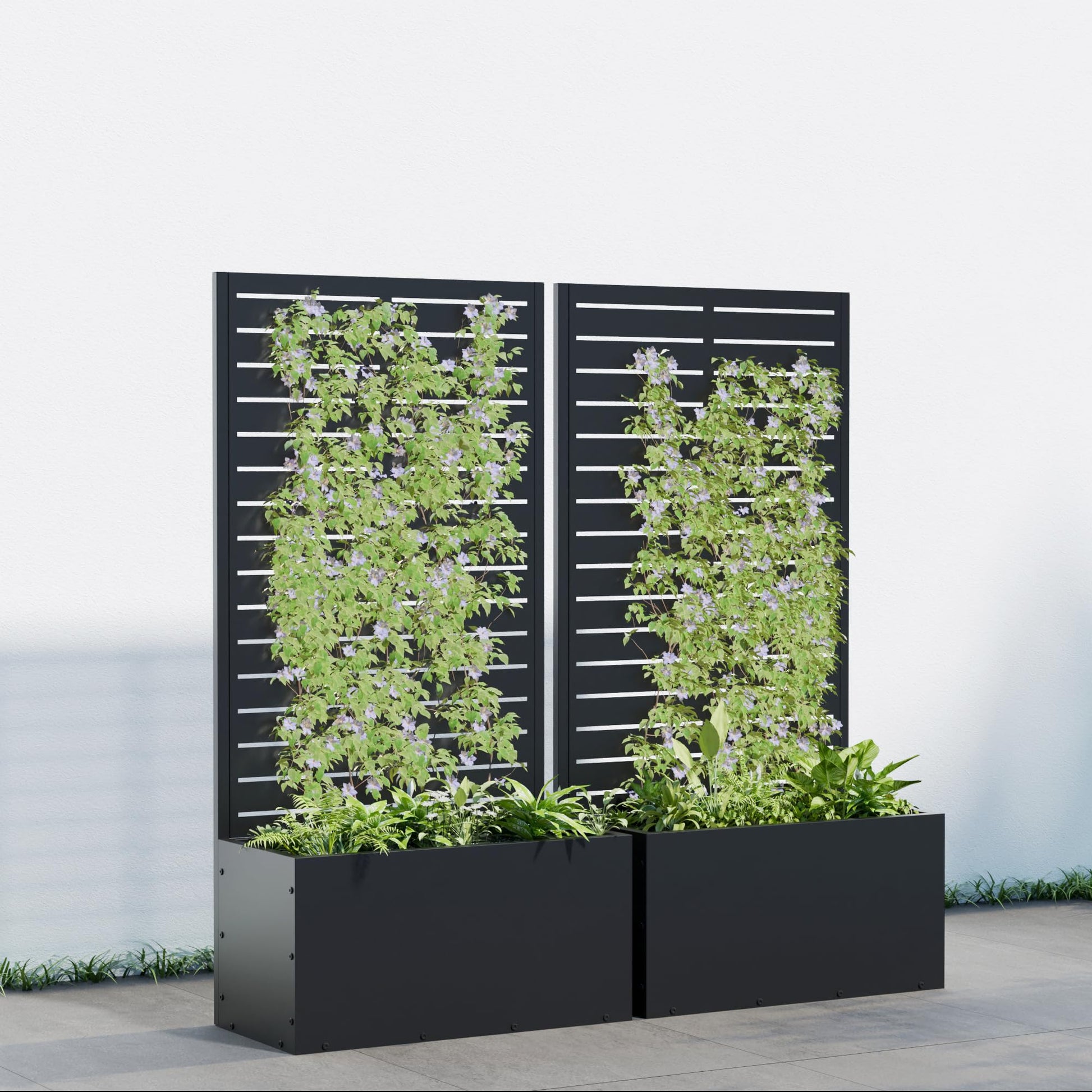 Casaphoria 47"x24" Metal Raised Garden Bed with Trellis(2 Pack), Outdoor Planter Box with Wheels & Drainage Holes for Climbing Plants, Flowers, Elevated Garden Kit with Privacy Screen, Black-Louvered