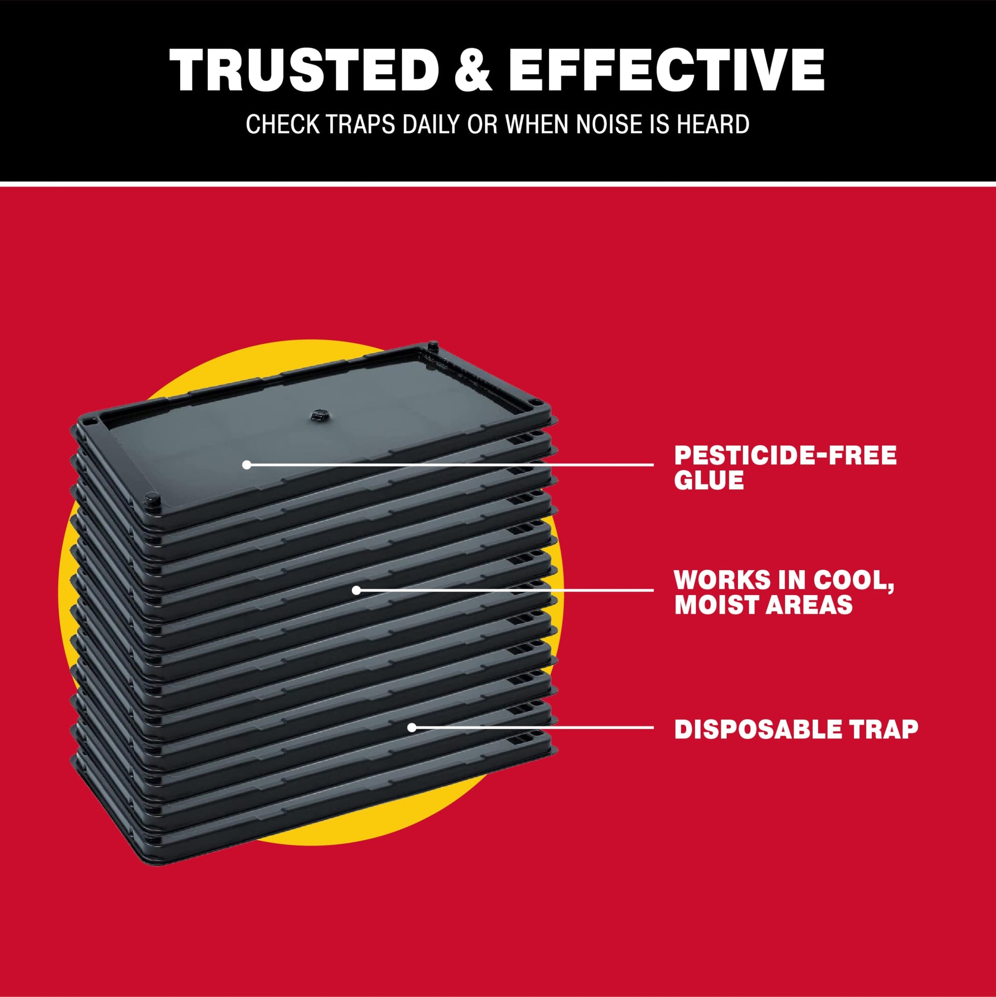 YEAR-ROUND PROTECTION: The disposable large mouse pad is ready to use. Our adhesive formula is designed to prevent hardening that can limit the effectiveness of the rodent and snake trap. When placed in an area with normal conditions, glue mice traps can last up to one full year. The glue trays are ideal for wet/damp/humid conditions with a waterproof design.