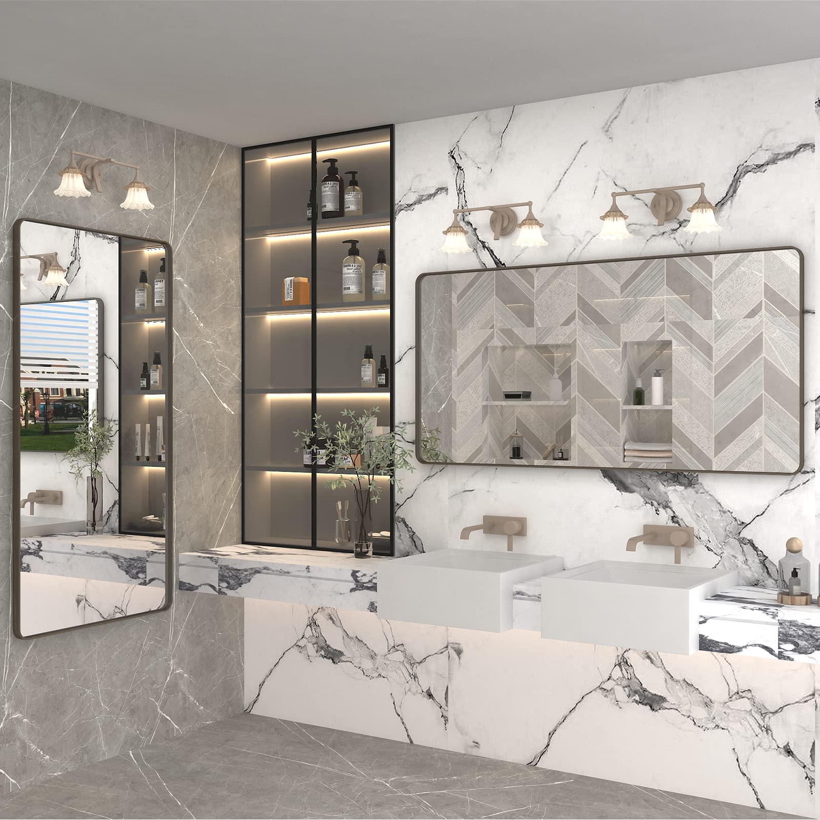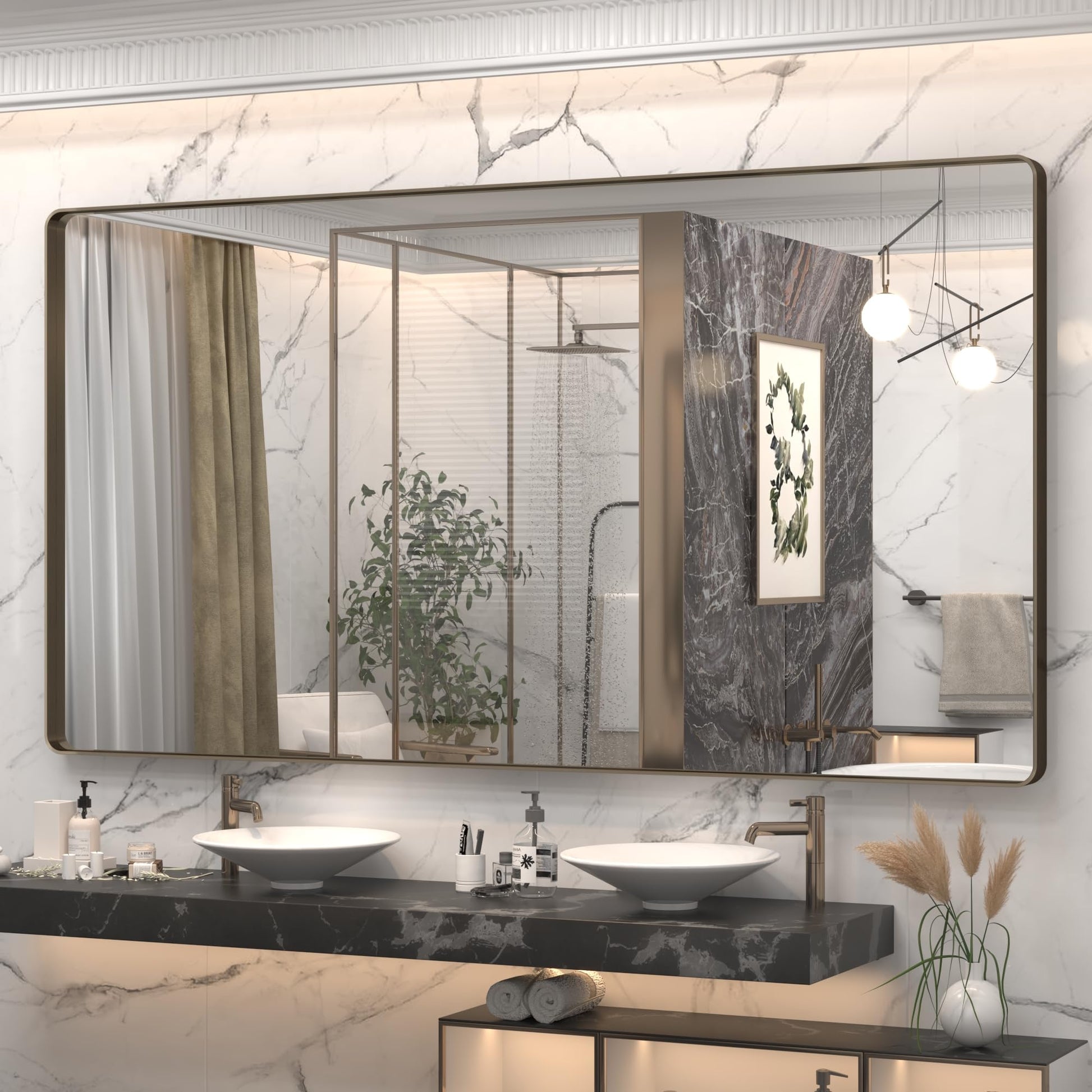 【Durable Brushed Bronze Framed Mirror】With round corner metal frame, CHARMOR bronze bathroom mirror looks elegant and feels smooth. The frame material is premium alumium alloy with brushed texture, which is stylish and more durable. Light weight, good corrosion resistance and wear resistance.