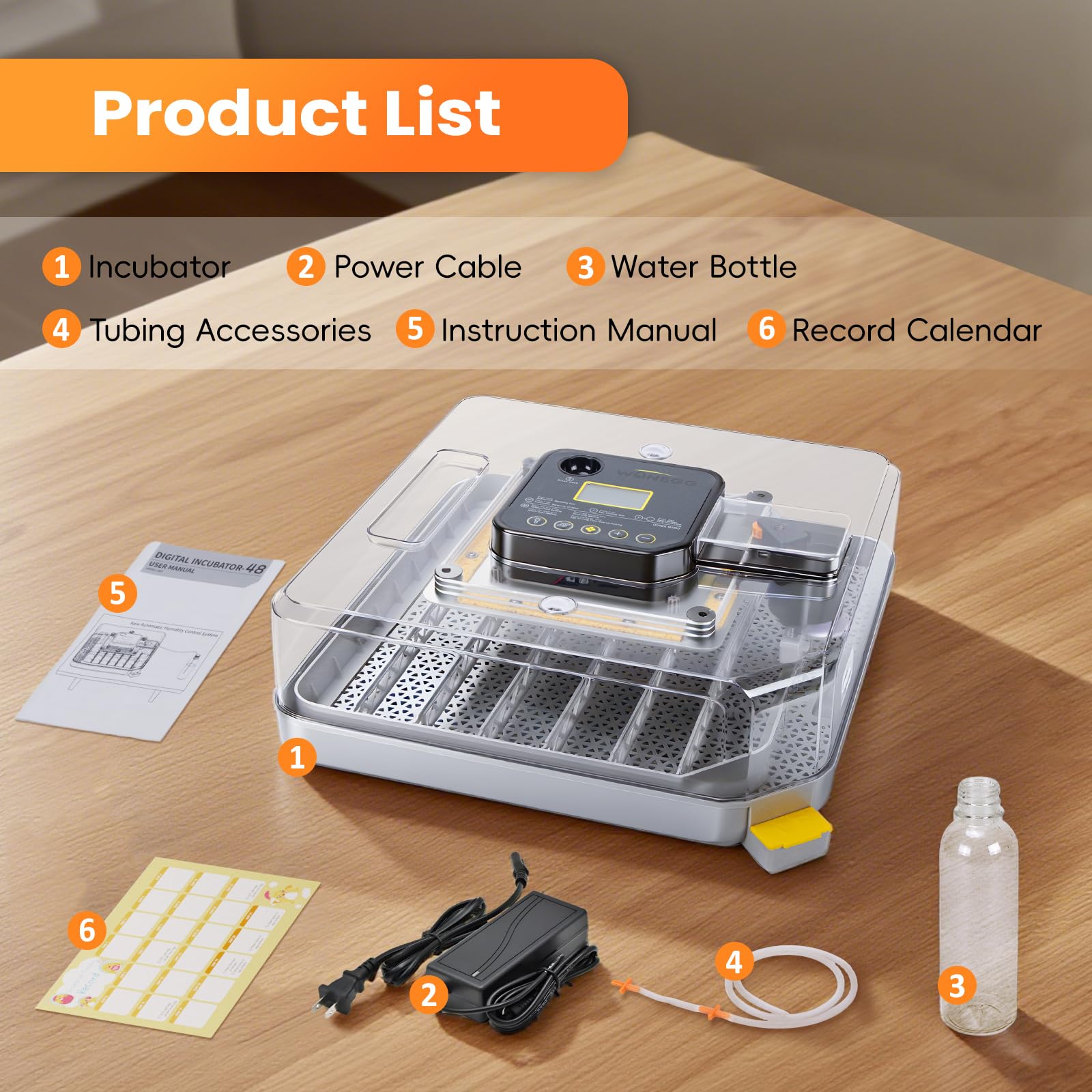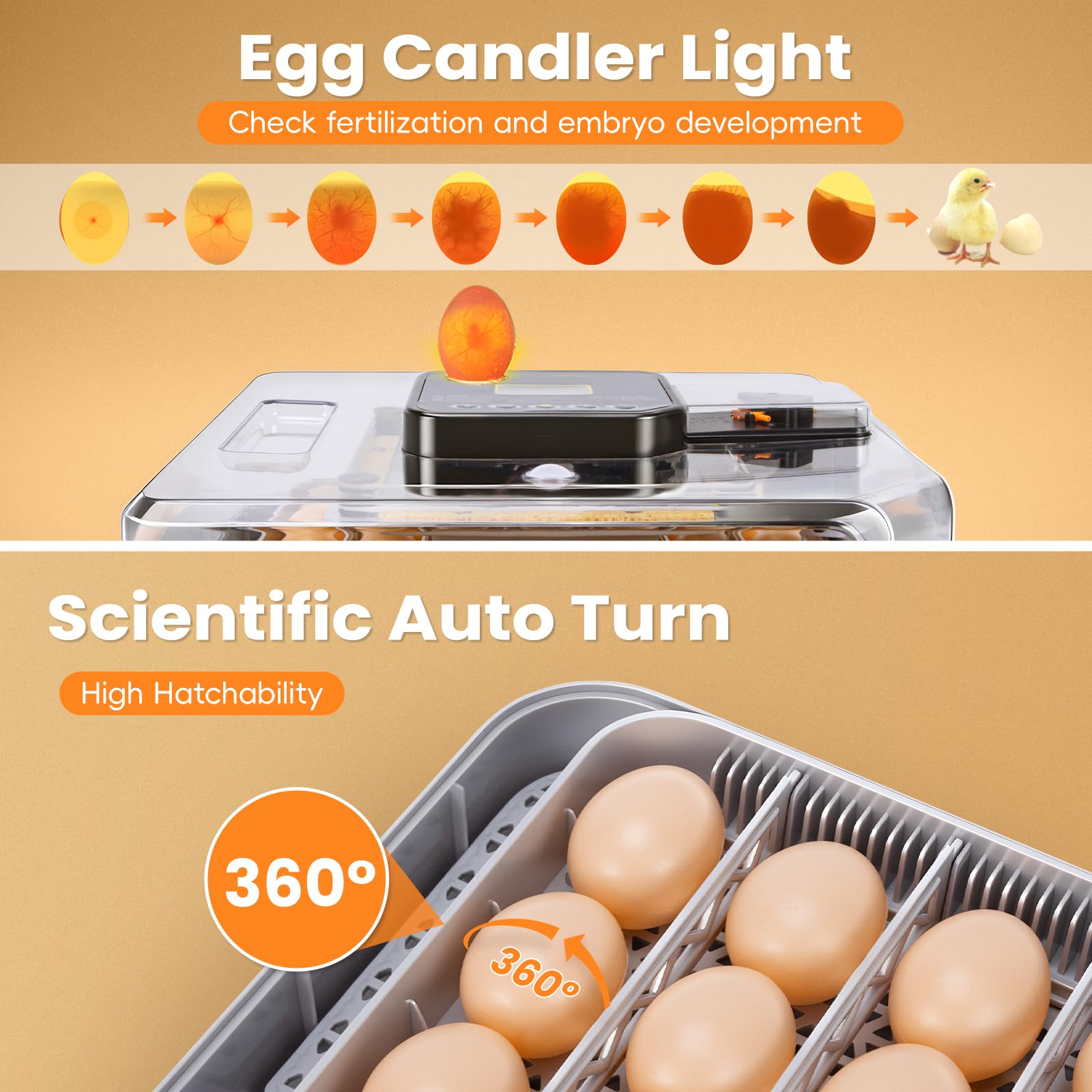 48-Egg High-Capacity Egg Incubator: This smart chicken egg incubator features precise temperature control, auto humidity, automatic egg turning and a hatch countdown timer for efficient hatching. Great for chickens, ducks, quail, and more—perfect for beginners, small poultry farms, and labs.