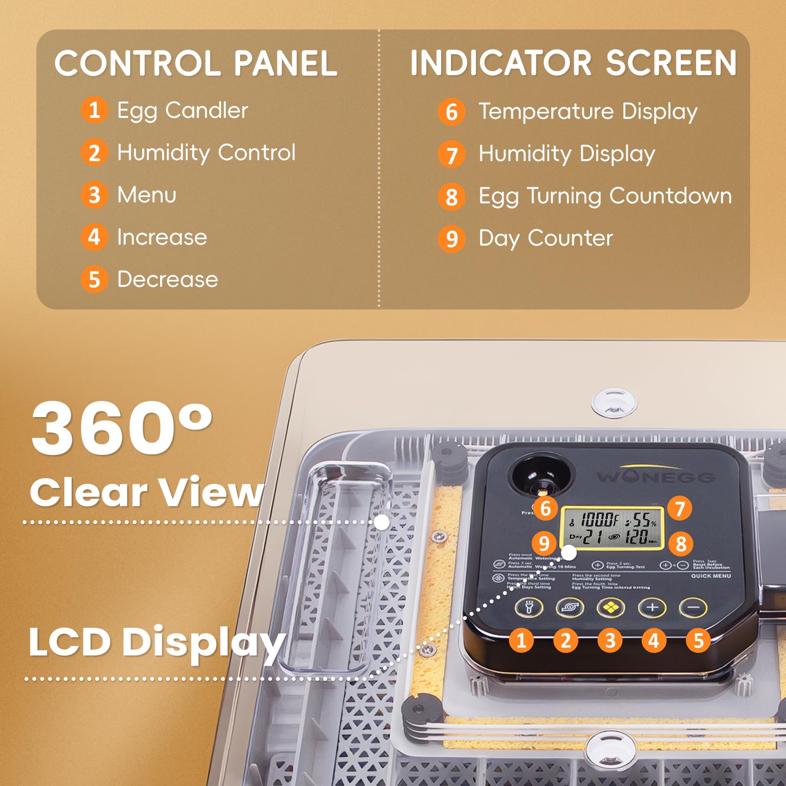 Automatic Humidity Control: Built-in motor adds water precisely without opening the lid, keeping humidity at optimal levels for hatching.