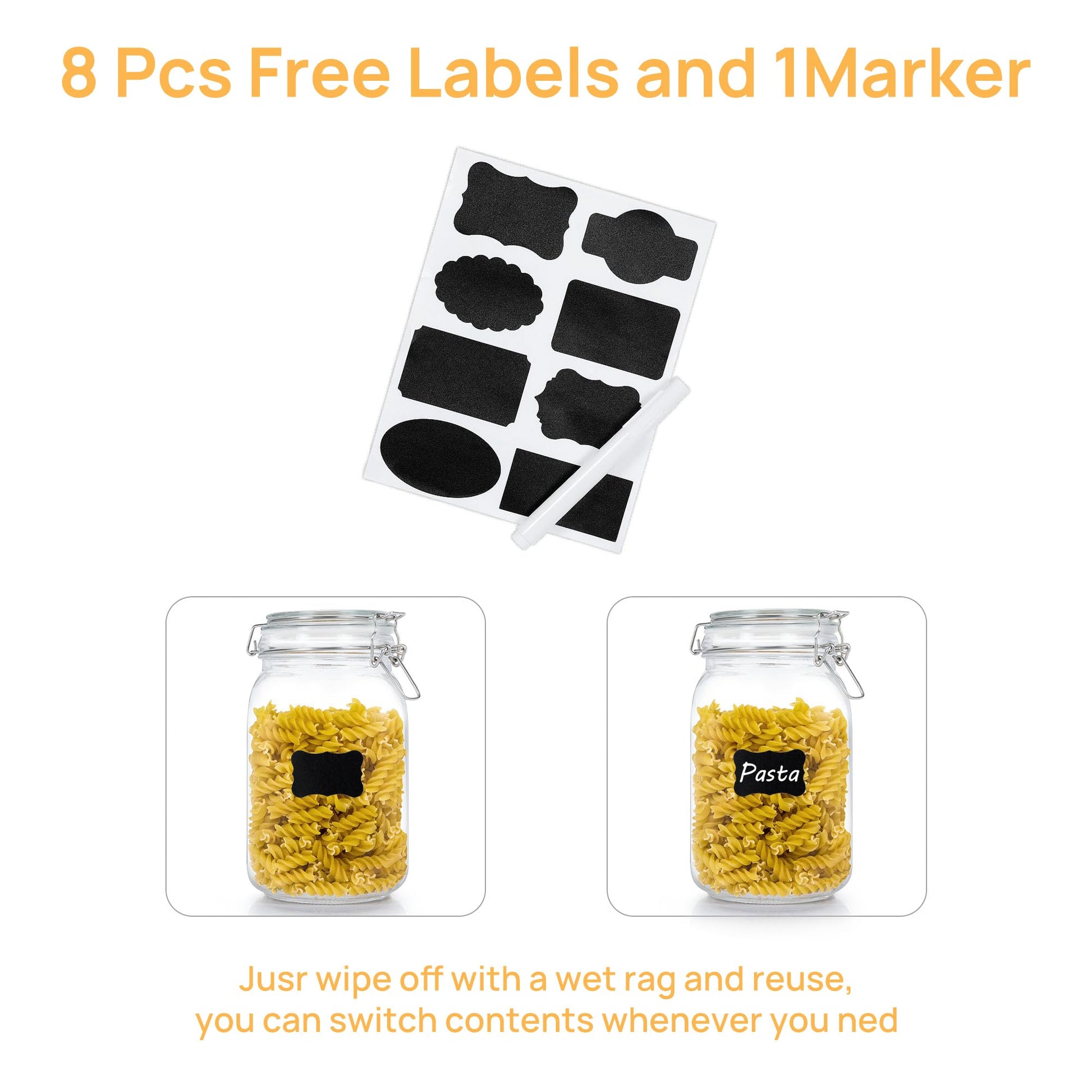 Durable and Convenient — Crafted of food-graded glass, BPA-Free, non-toxic. They are durable enough for your daily storage use. Included extra 8 pcs reusable labels, you can switch contents whenever you need.