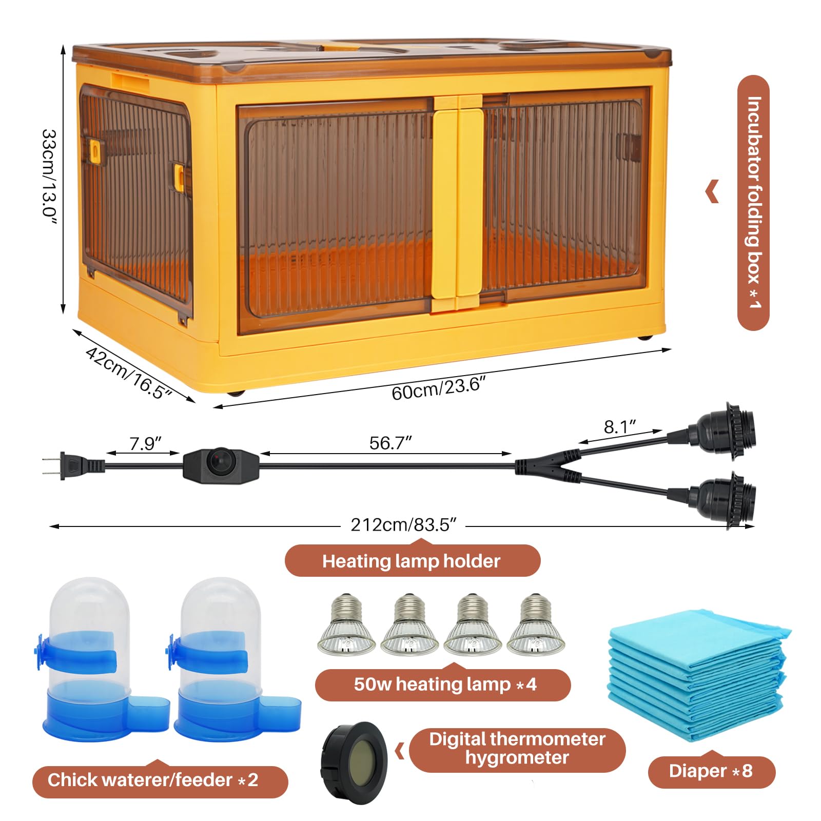 Package List : (Simple assembly is required) brooding box x1, feeder x1, waterer x1, pet pads x8