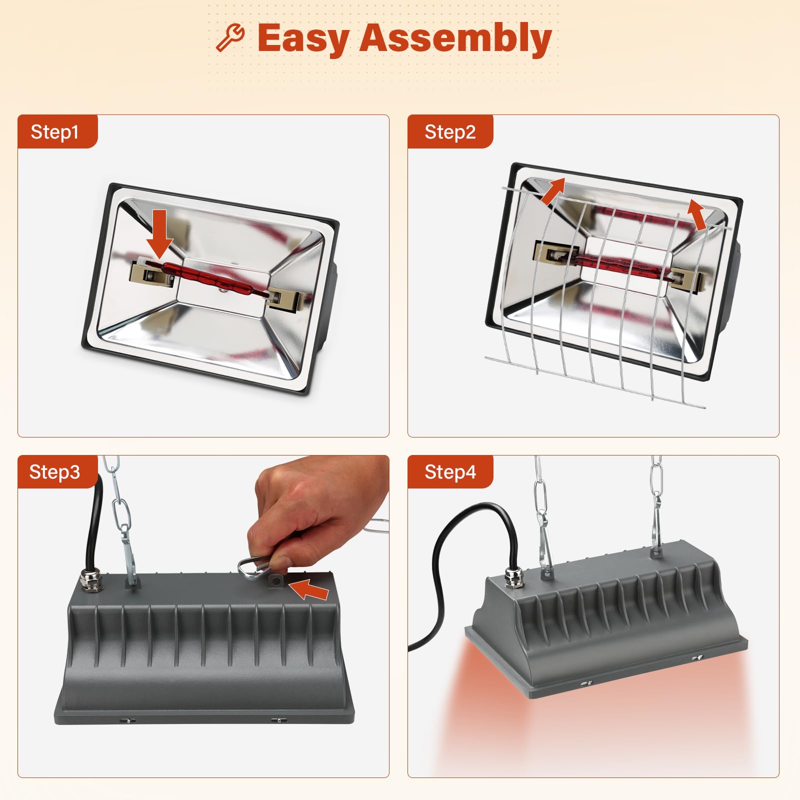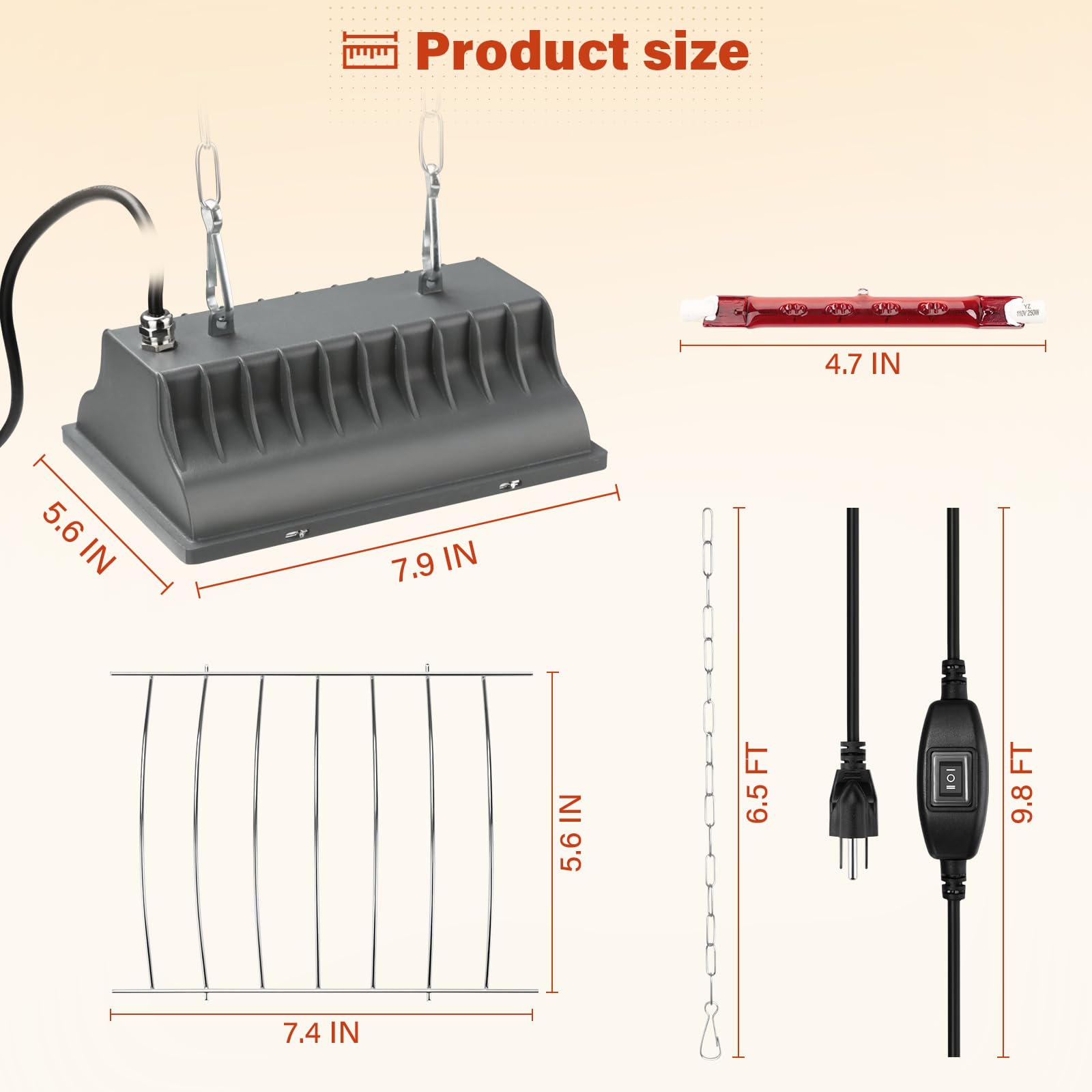 Convenient & Easy to Install: Equipped with a 9.8-foot power cord and a 6.5-foot stainless steel chain, the lamp offers flexibility in placement and easy installation, making it perfect for various animal enclosures like chicken coops, barns, or pet habitats